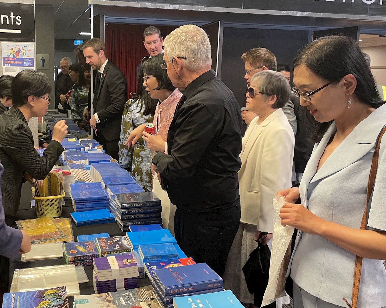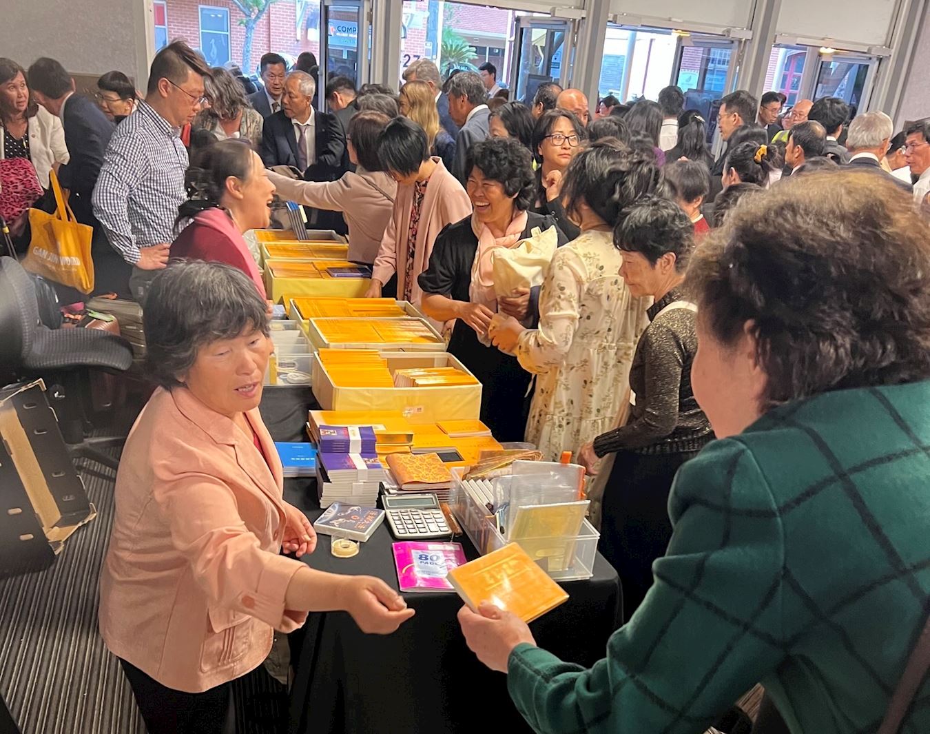 ![]() 圖2~4:法會休息期間,學員們在天梯書店展位,踴躍購買各語種大法書籍。 |
