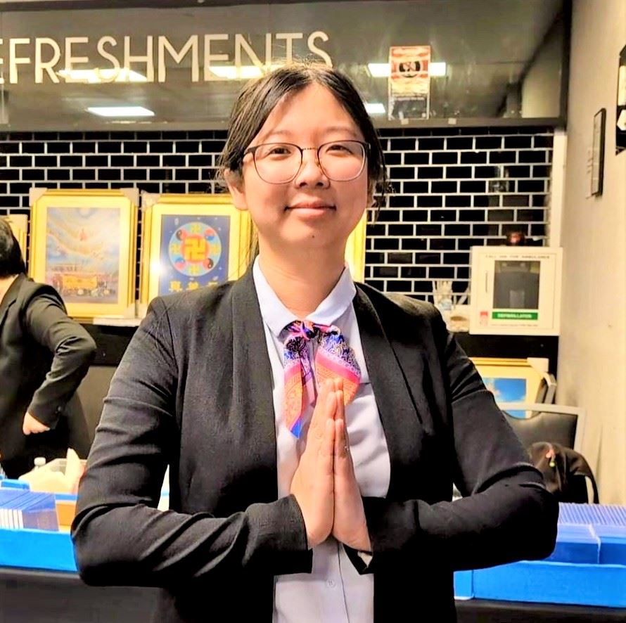 「我覺得參加法會就是一種修煉,因為每次參加法會都要排除些干擾,經歷各種挑戰才能抵達這裏,還要全程專注地聽完所有法會交流。我能感受到法會現場祥和的能量場,法會的交流激勵著我會更加精進。」