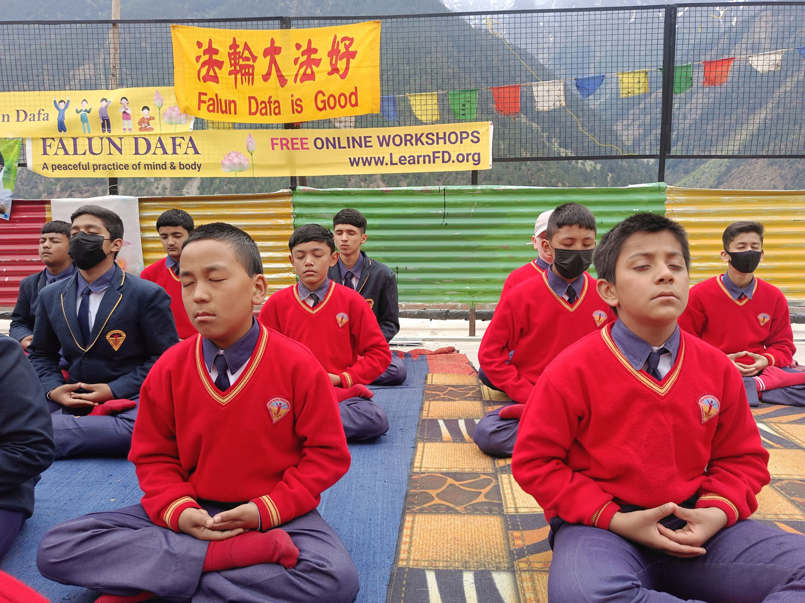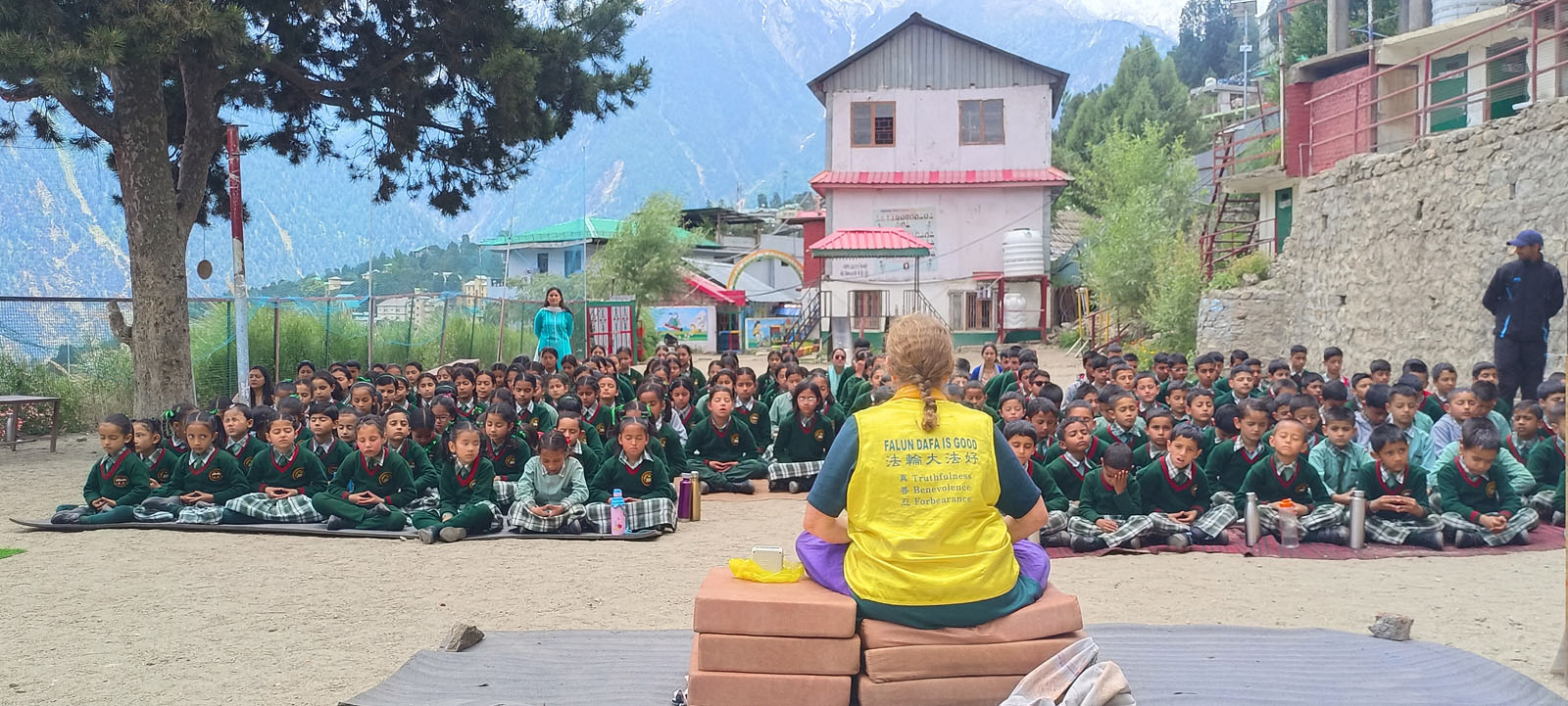 ![]() 圖1~12:法輪功學員走訪了西喜馬拉雅地區的十三所學校,向師生介紹法輪功並免費教授功法 |