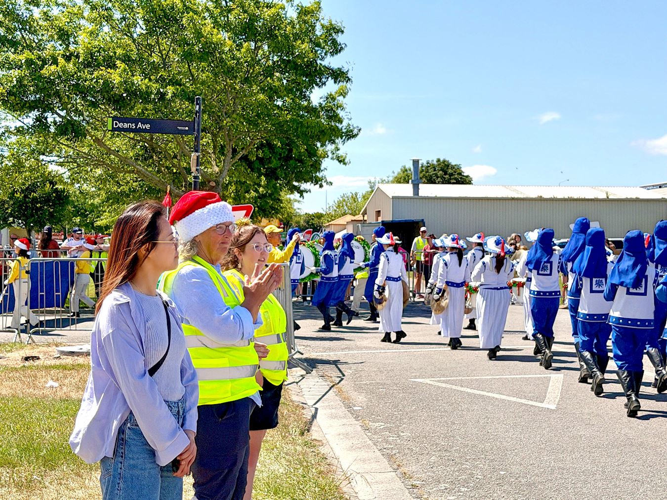 '圖7:二零二五年十一月二十三日由法輪功學員組成腰鼓隊參加了奧克蘭帕帕庫熱(Papakura)區聖誕節遊行。'