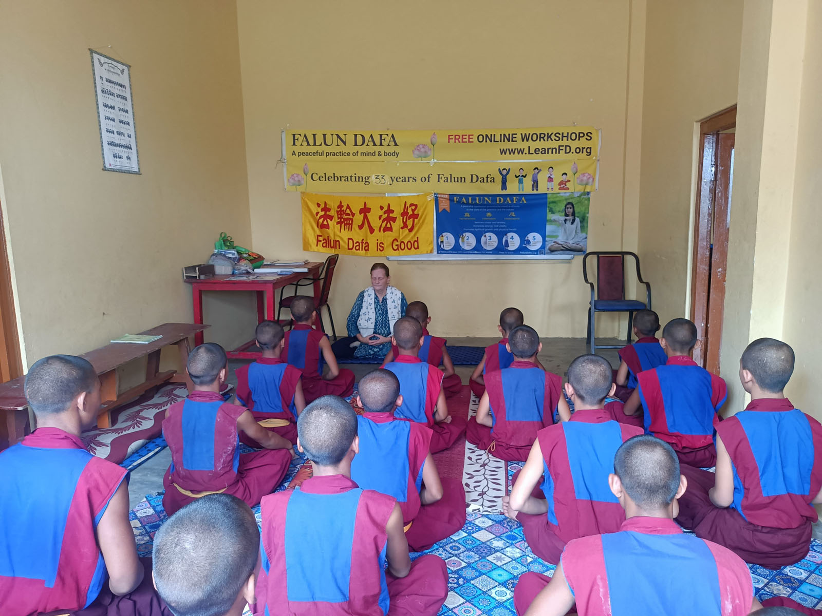 前來學煉法輪功的學生來自多種背景,包括女子學校和學院、兒童之家、特殊教育學校以及一所藏族學校。不過,他們都對功法以及法輪大法真、善、忍的價值觀表示認可與感激。在教功活動過程中,當地人也給予了不少幫助,支持法輪功學員弘揚法輪大法的努力。