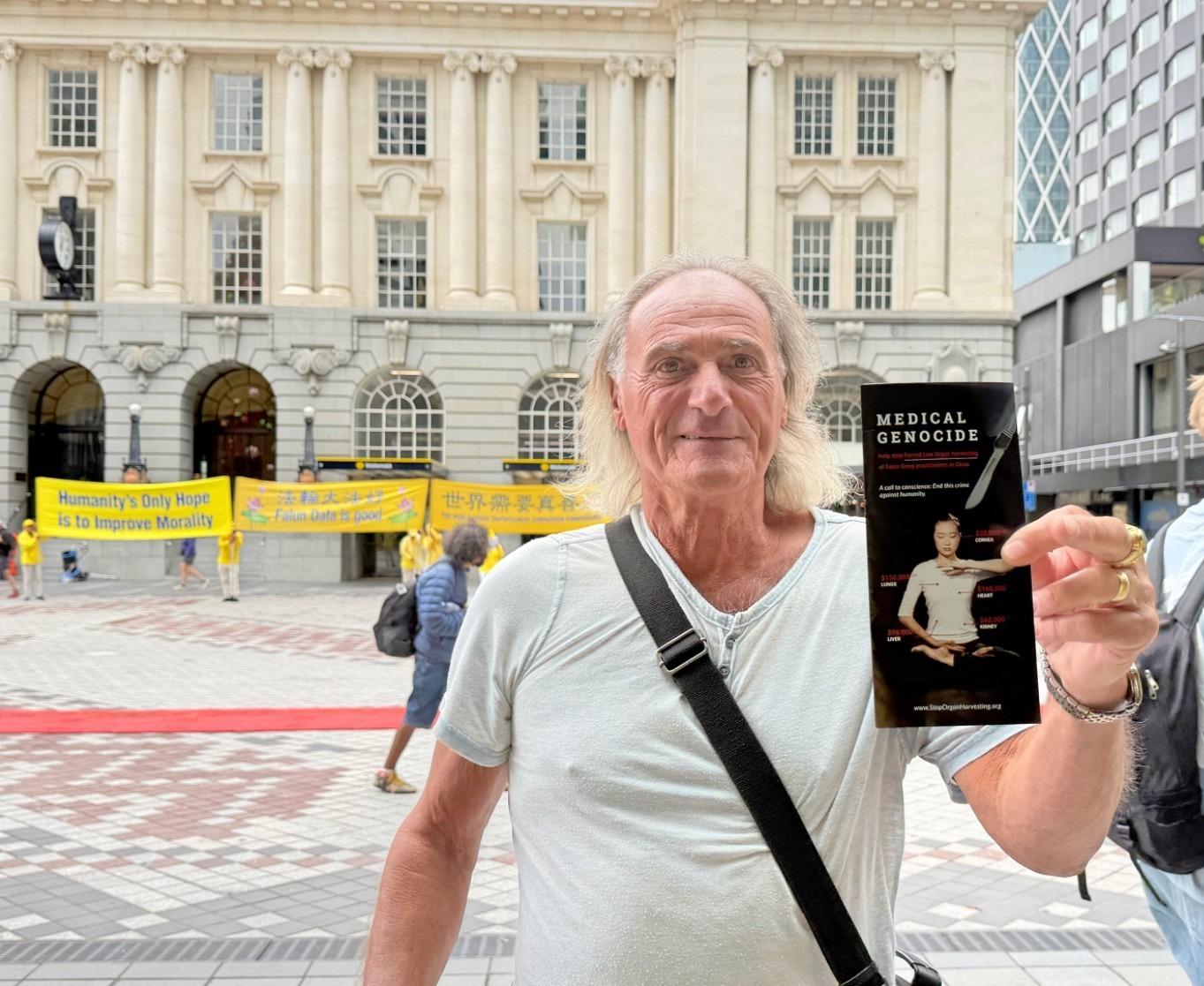 來自澳大利亞悉尼的遊客吉爾伯特﹒博紮(Gilbert Bozza)在活動現場聽了人權律師的發言,他憤怒地譴責中共長期存在的活摘人體器官行為,直言這一行為「令人作嘔、極不人道」。