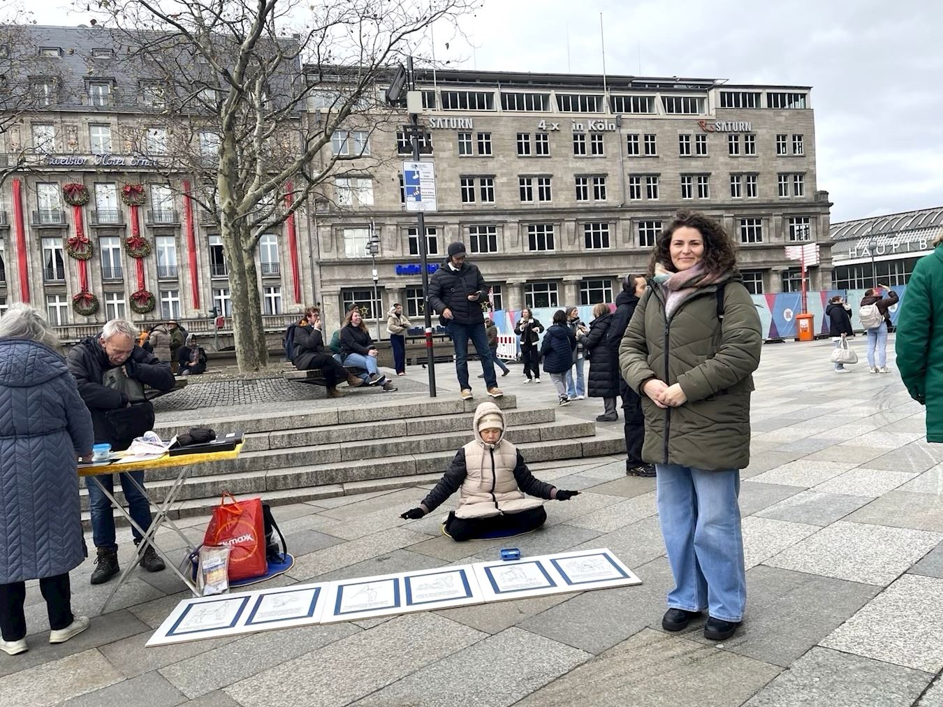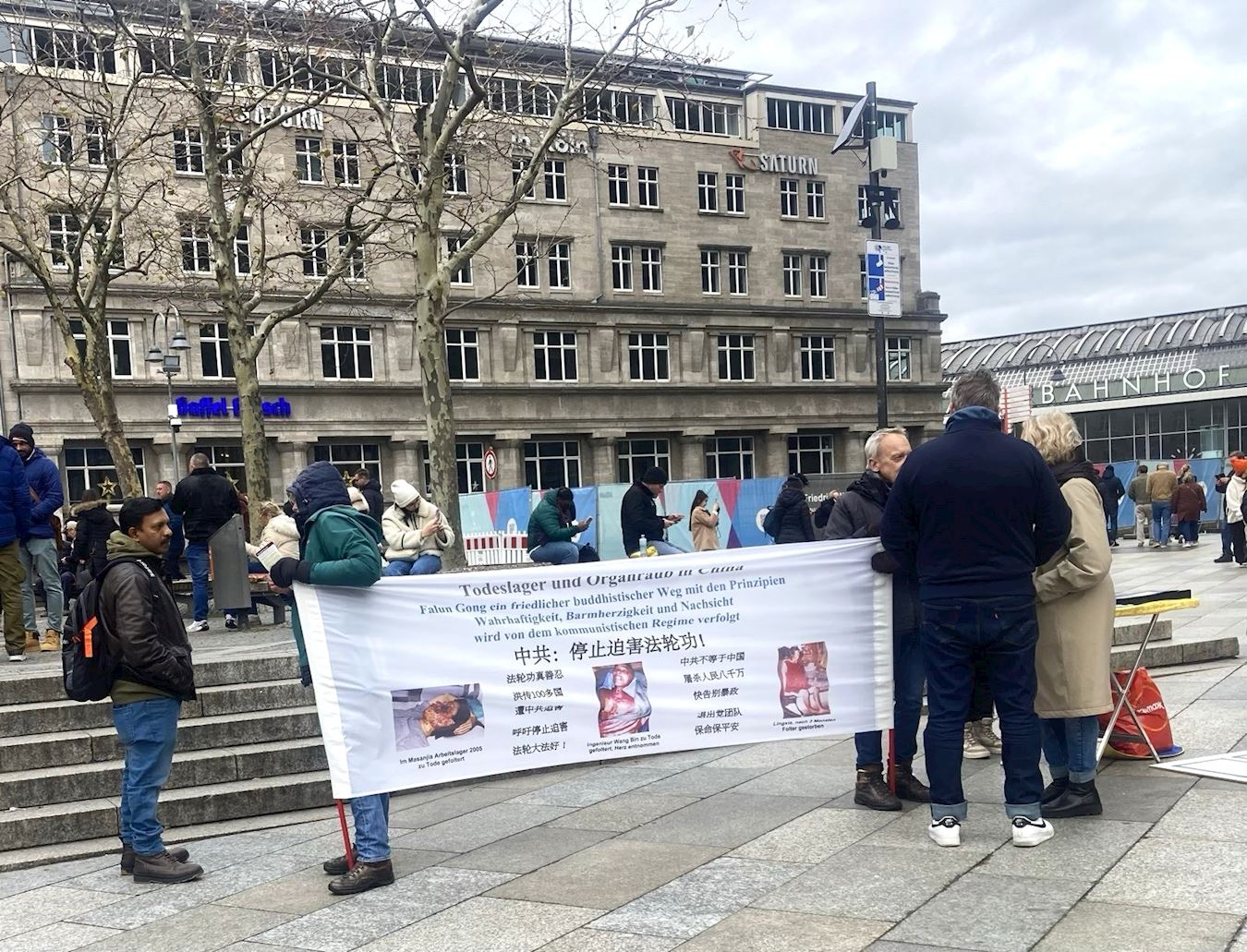 • 科隆大教堂廣場傳真相 德國女士被法輪功吸引