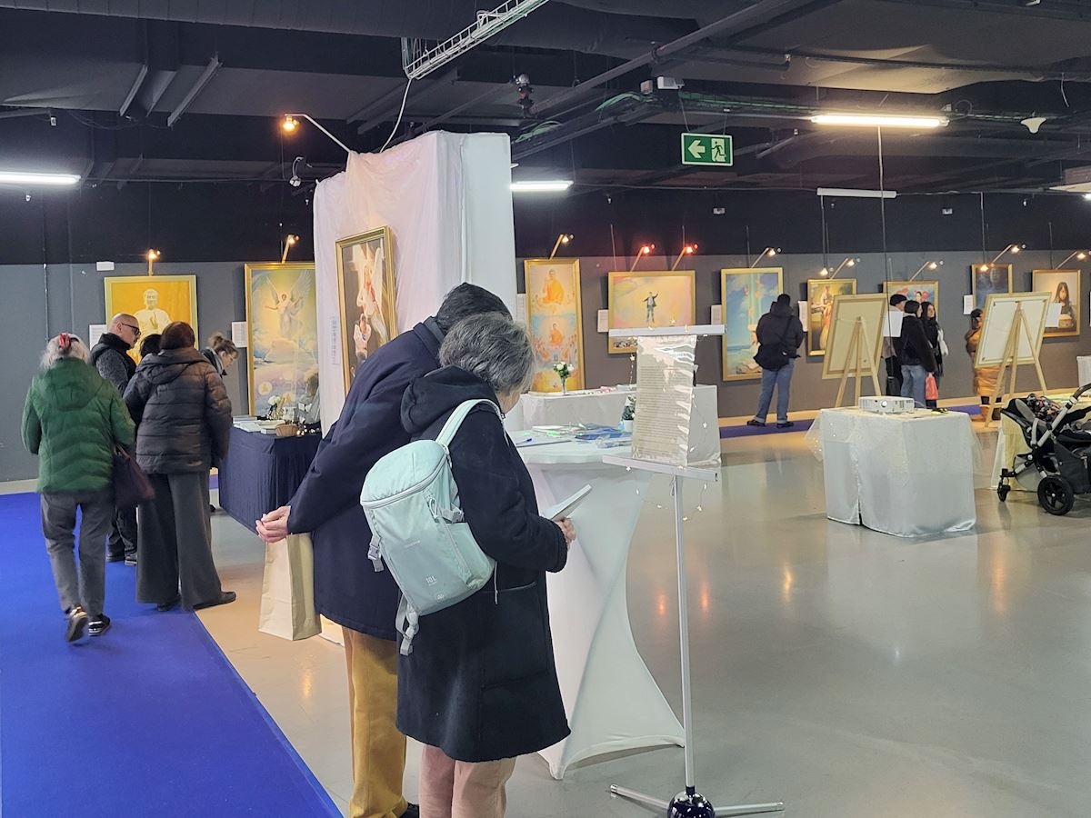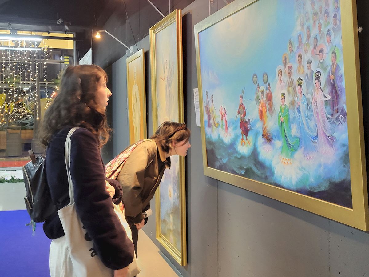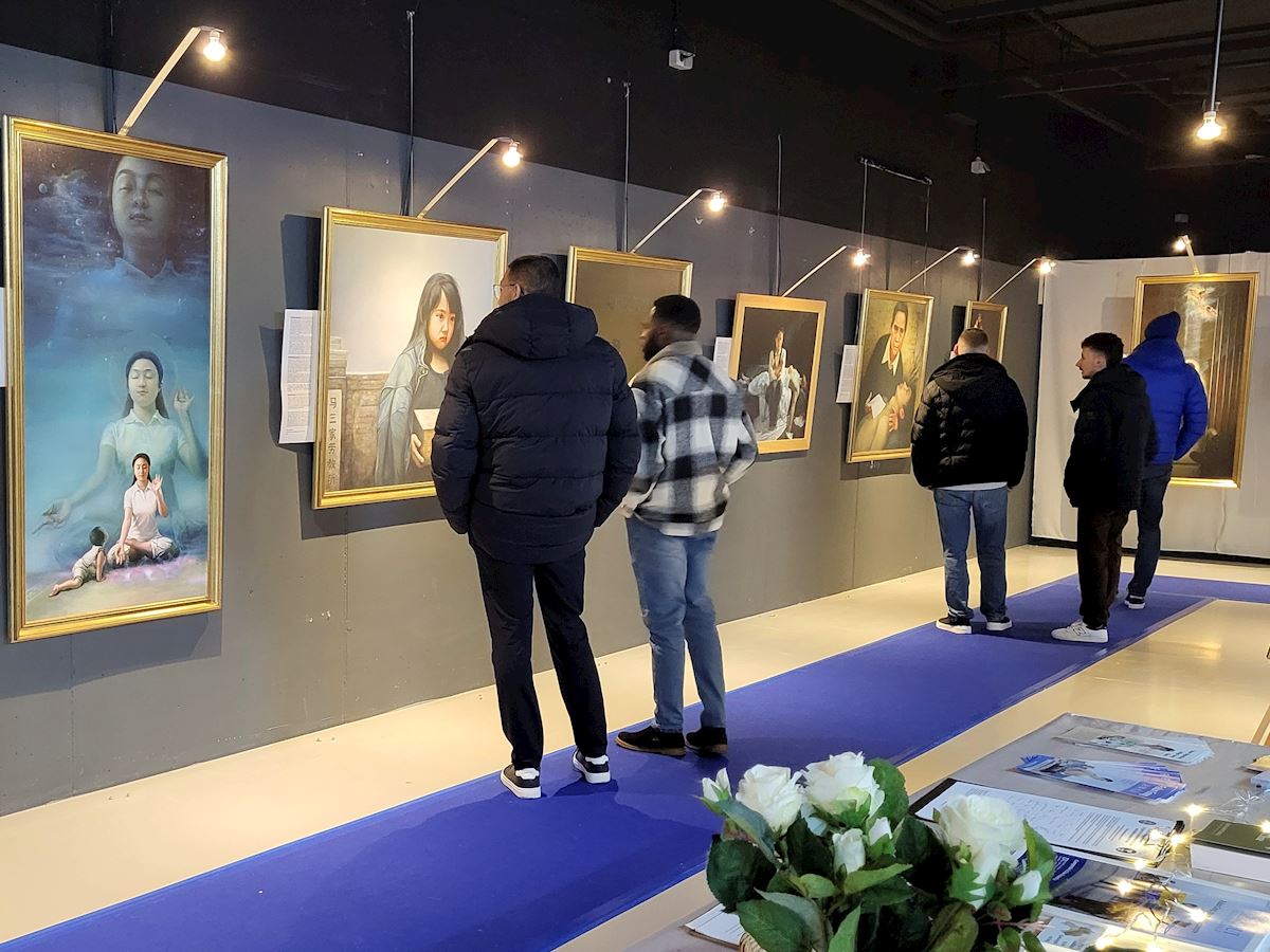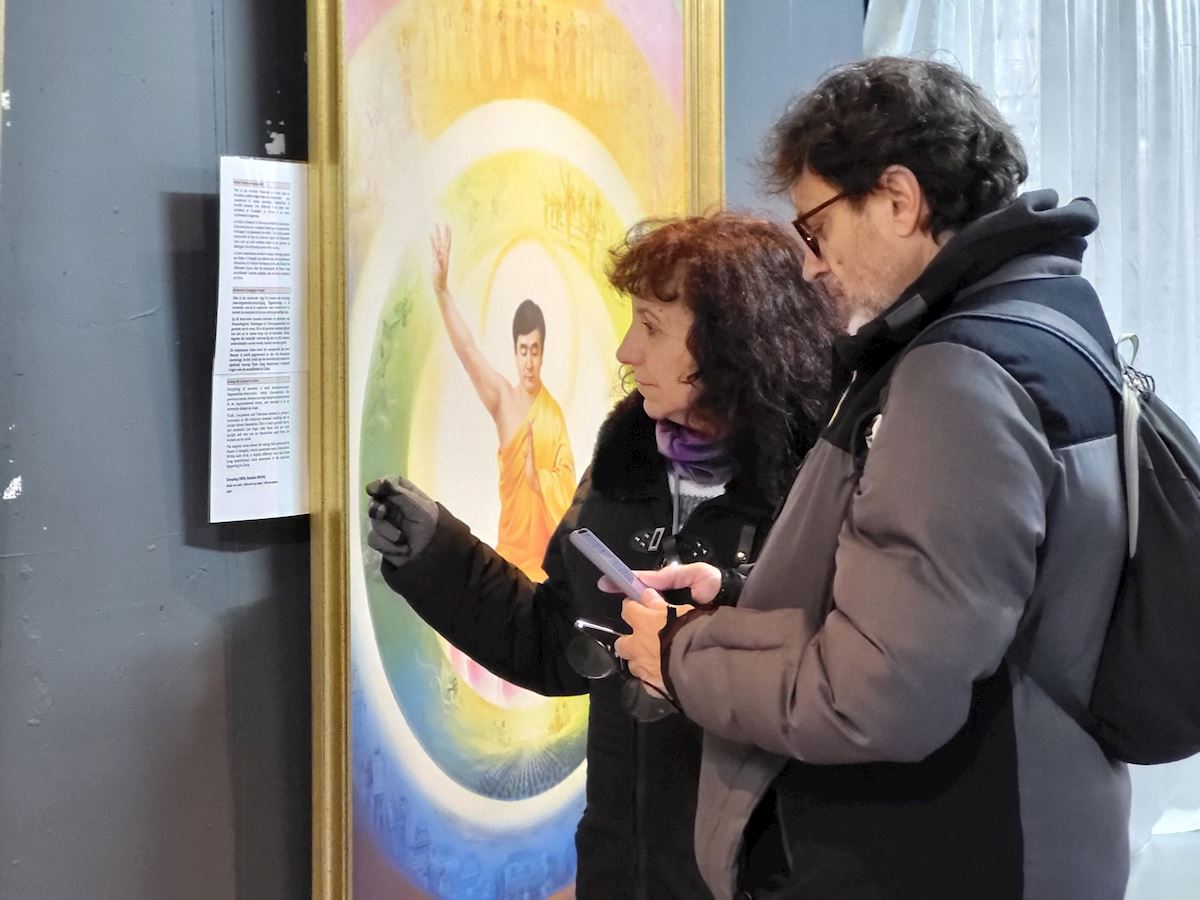 人們在欣賞到高品質畫作的同時,了解了法輪大法的真相,中共的迫害修煉人的罪惡行徑,也引發了人們對法輪功的關注。