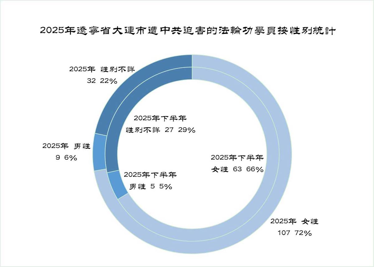 ![]() 圖2:2025年遼寧省大連市遭中共迫害的法輪功學員按性別統計 |