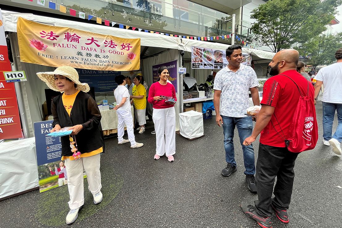 圖5~7:法輪功學員在澳洲多元文化節展位前傳遞真相、分享修煉真善忍高德大法的美好。