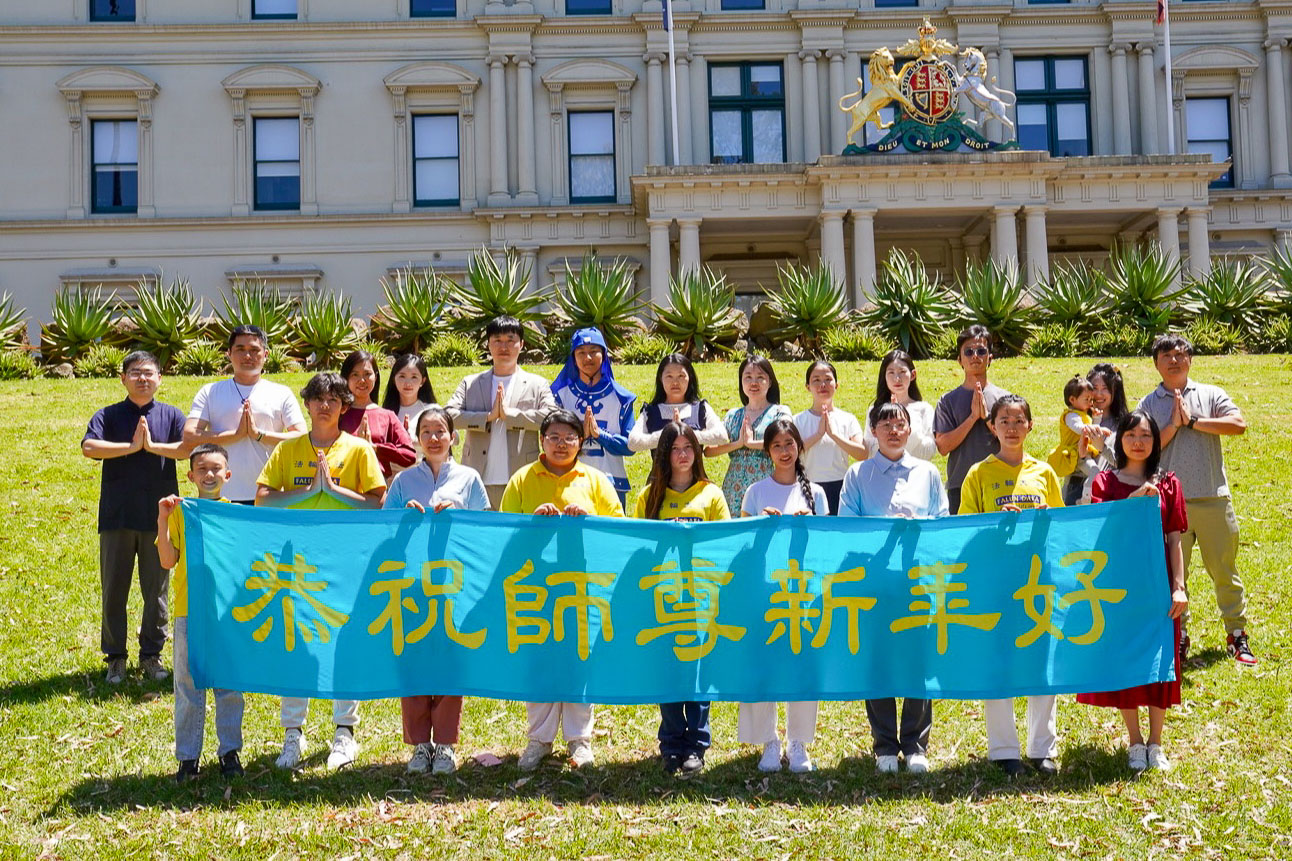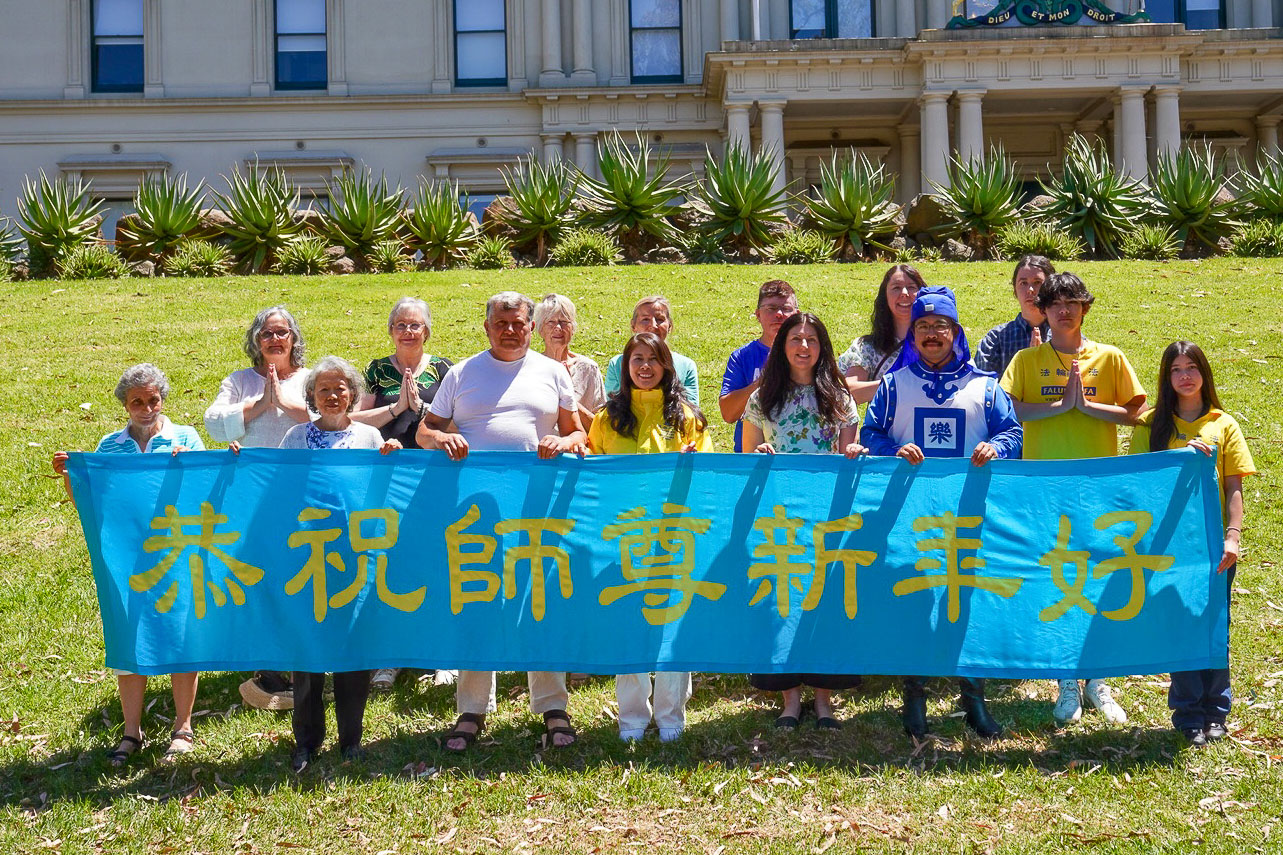 ![]() 圖2:墨爾本部份西人法輪功學員恭祝師尊新年快樂。 |