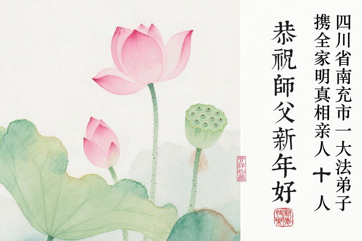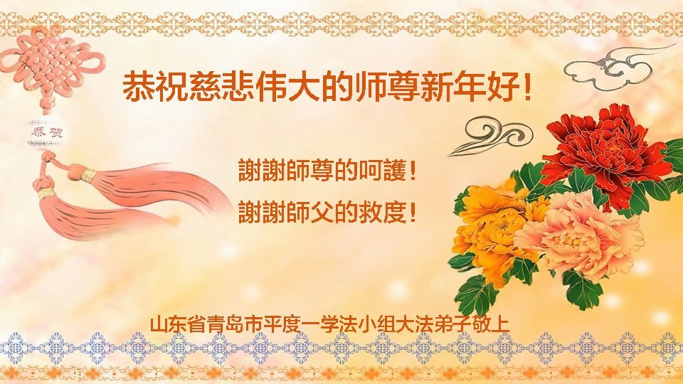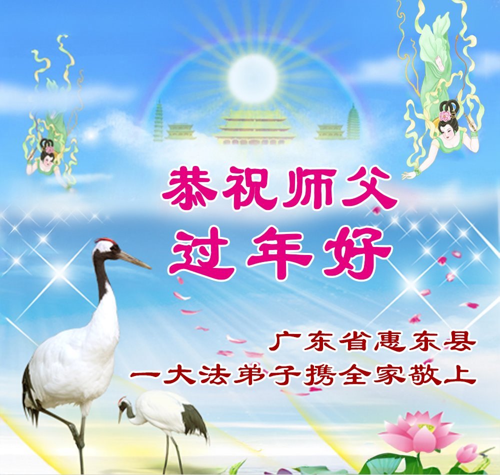 大年到來之際,我與全家人給師父拜年,恭祝師父過年好!在您慈悲救度的浩蕩洪恩中,讓我明白了普世的價值,知道了在這濁世中守住人的善,謝謝您的迷途引領、慈悲的呼喚,師父您辛苦了!