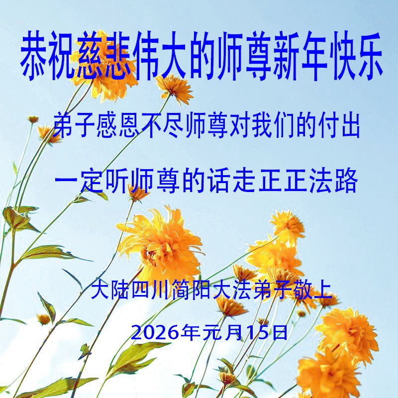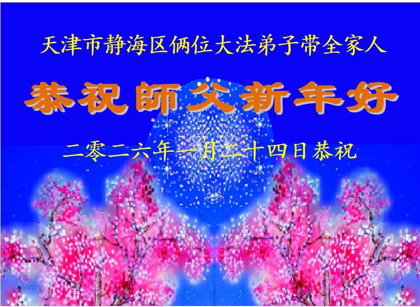 感恩師父多年來對我們全家人的保護!在師父的護佑下,這些年我們全家人都健康、平安、幸福、事事順利!我雖然沒有修煉,但我堅信大法好!天天誠心誦念:「法輪大法好,真善忍好」。新年之際,我代表全家人給師父拜年!師父過年好!師父辛苦了!