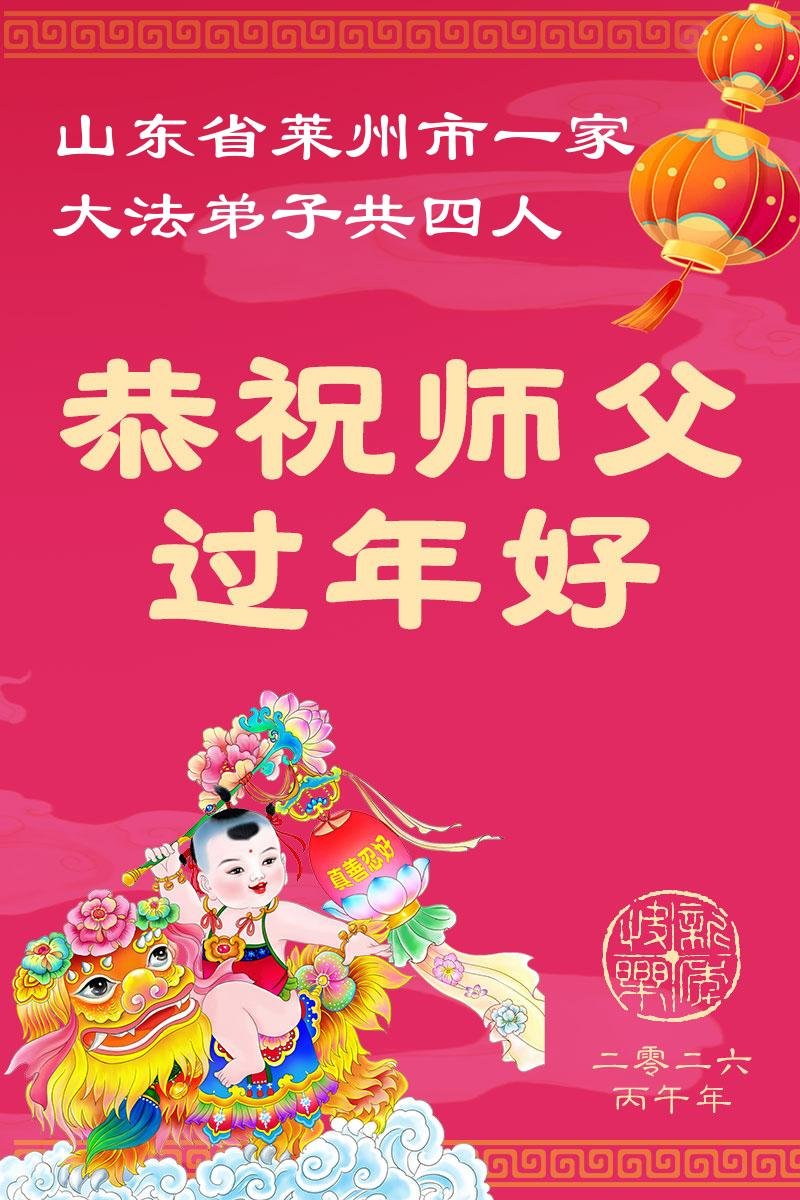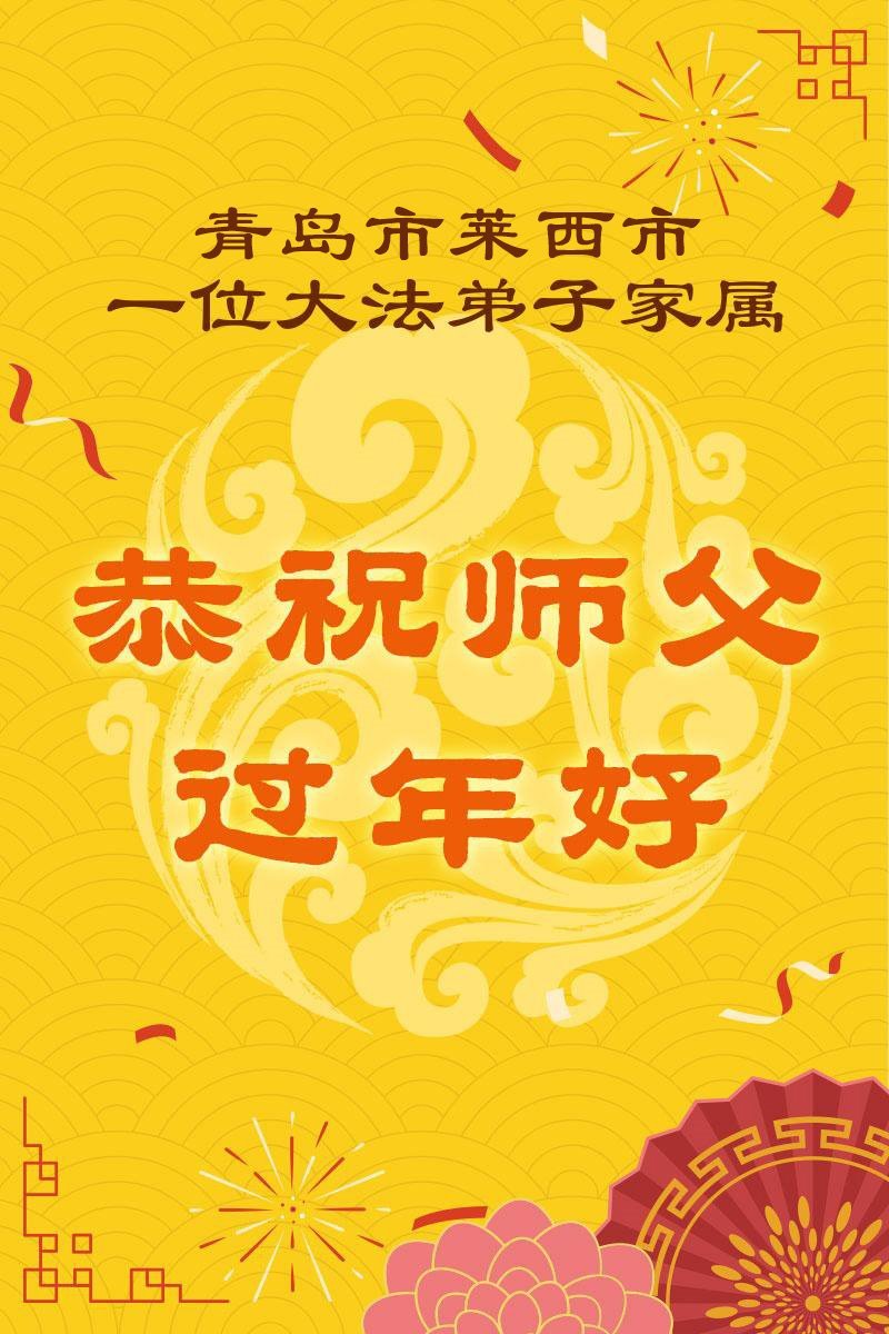 我們作為大法弟子的家屬給您拜年了,恭祝李大師過年好!您為世人的安危操盡了心,吃盡了苦頭,我們大法弟子的家屬是親身受益者,也是見證者,真是用盡千言萬語也表達不了對您的感恩!今生我們能成為大法弟子的家屬感到萬分榮幸,我們只有繼續支持家人修煉,理智、智慧地講真相、多救人,希望更多的家庭像我家一樣得到李大師的護佑,平平安安的度過這不平凡的一年又一年。感謝李大師的護佑!