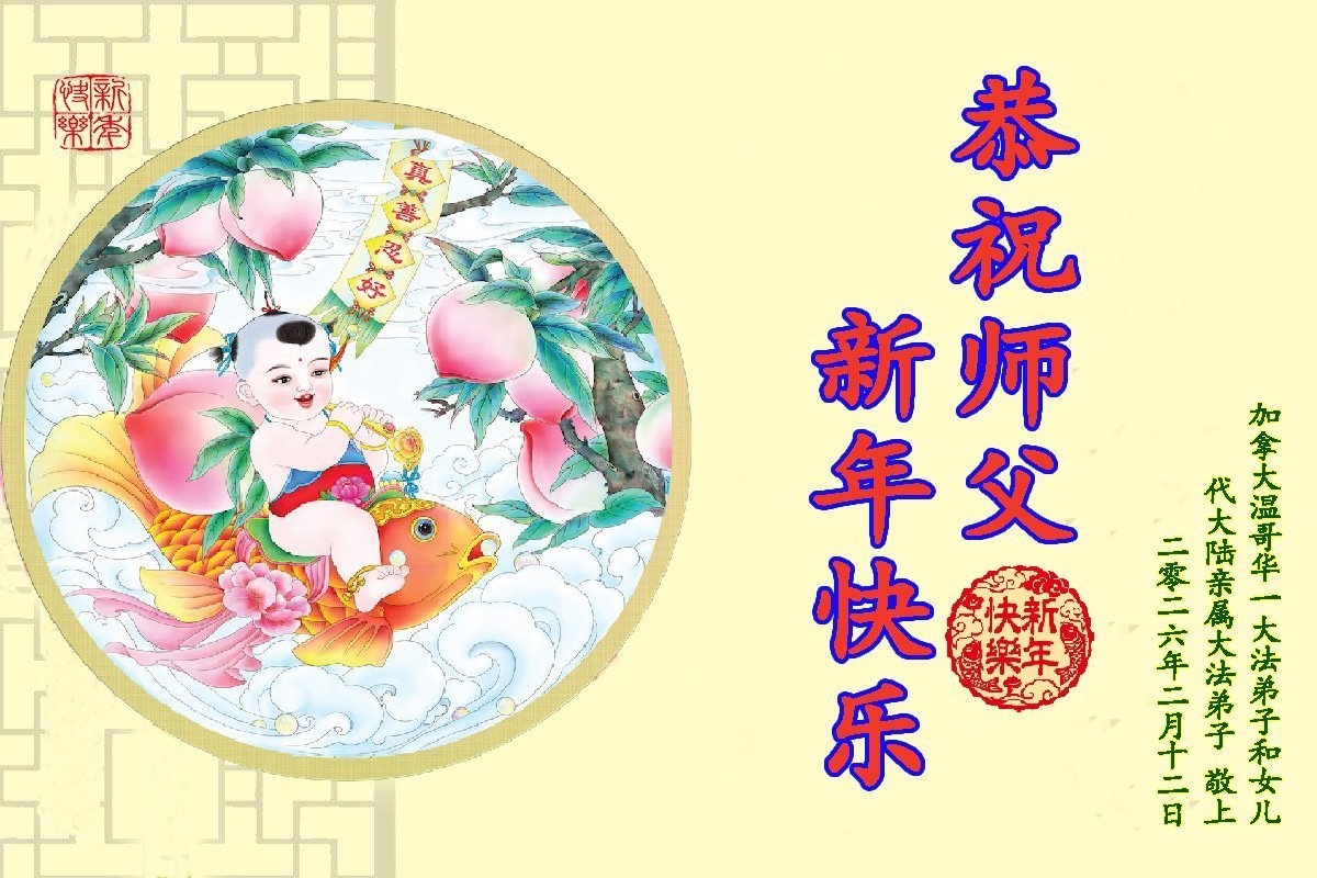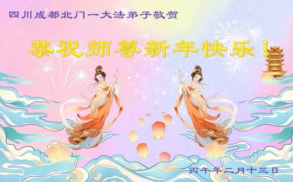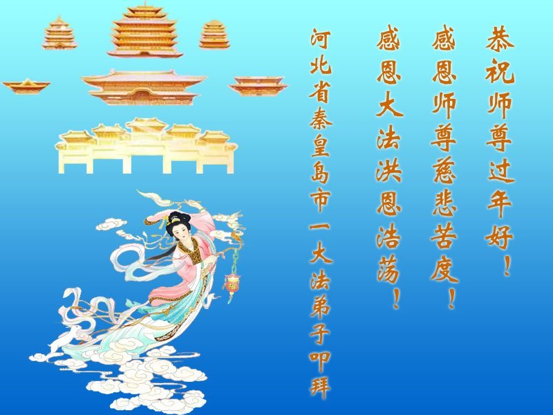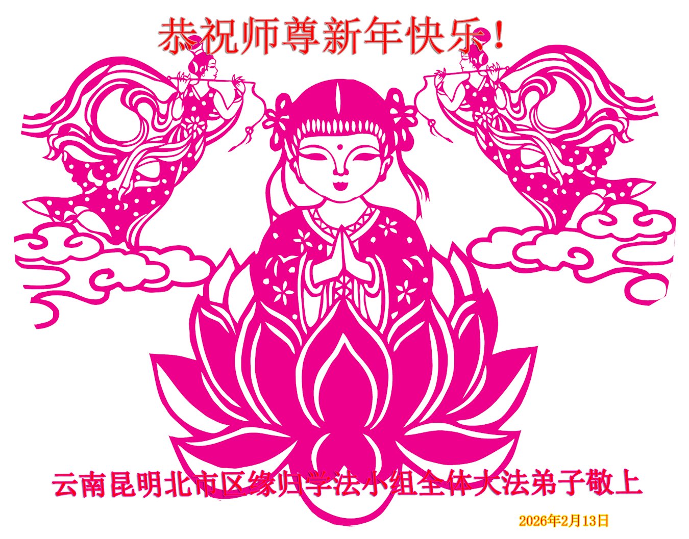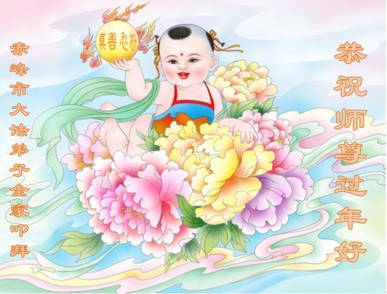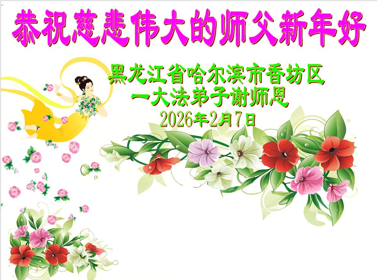 恭祝大法師父新年快樂!謝謝您洪傳宇宙大法,我念「法輪大法好!真善忍好!」我的眼睛就不疼了。