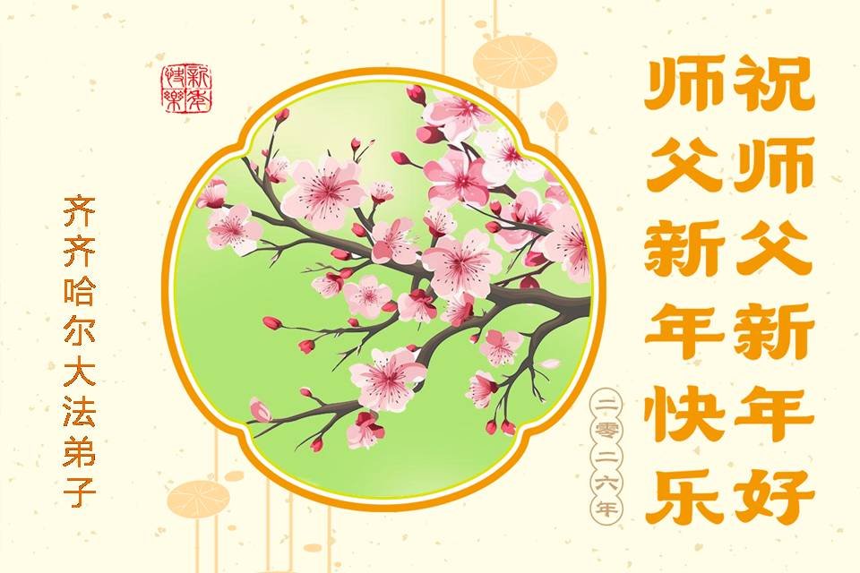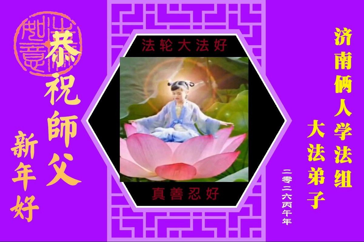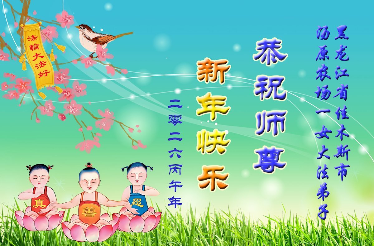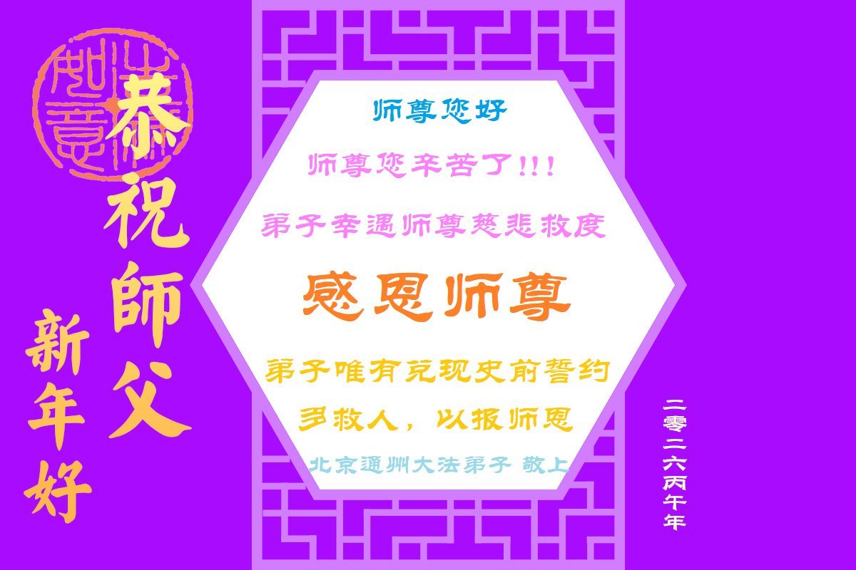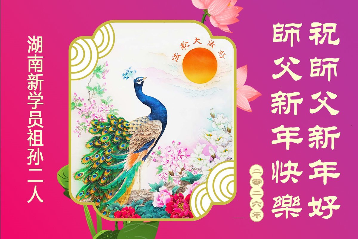 恭祝大法師父新年快樂!謝謝您洪傳宇宙大法,我念「法輪大法好!真善忍好!」我的眼睛就不疼了。