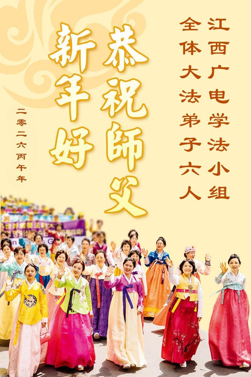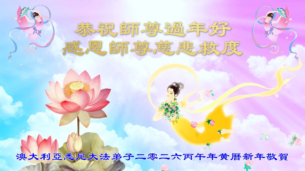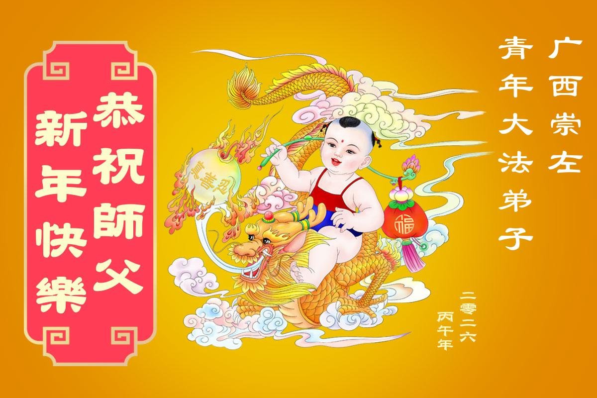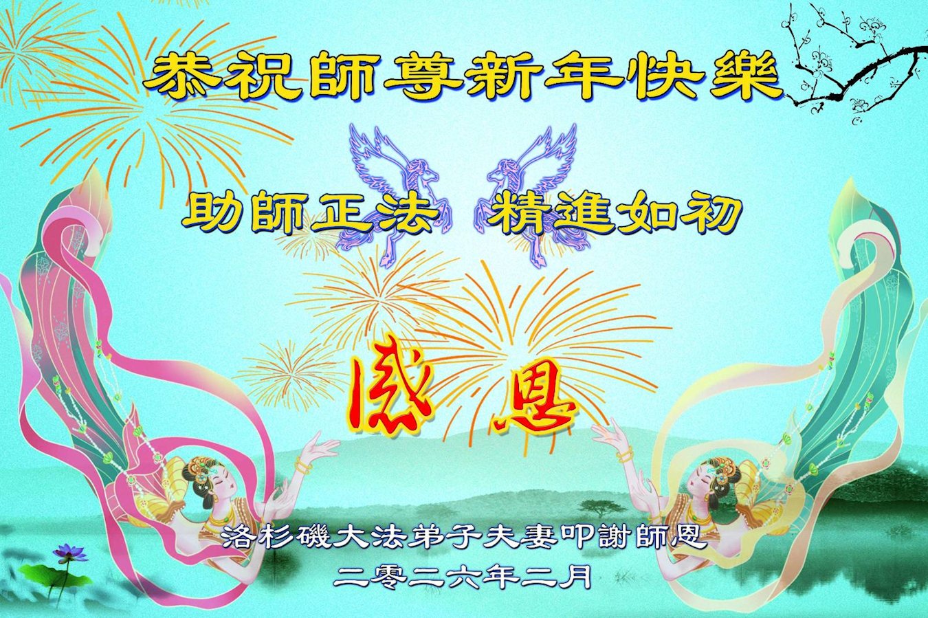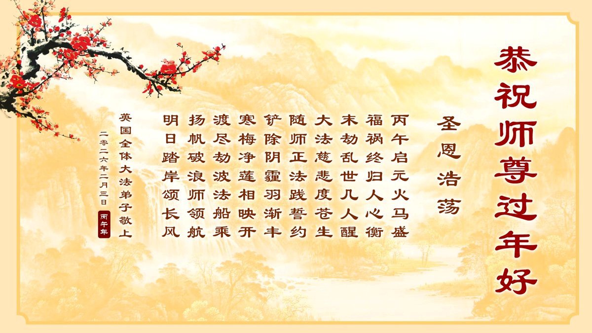 恭祝大法師父新年快樂!謝謝您洪傳宇宙大法,我念「法輪大法好!真善忍好!」我的眼睛就不疼了。