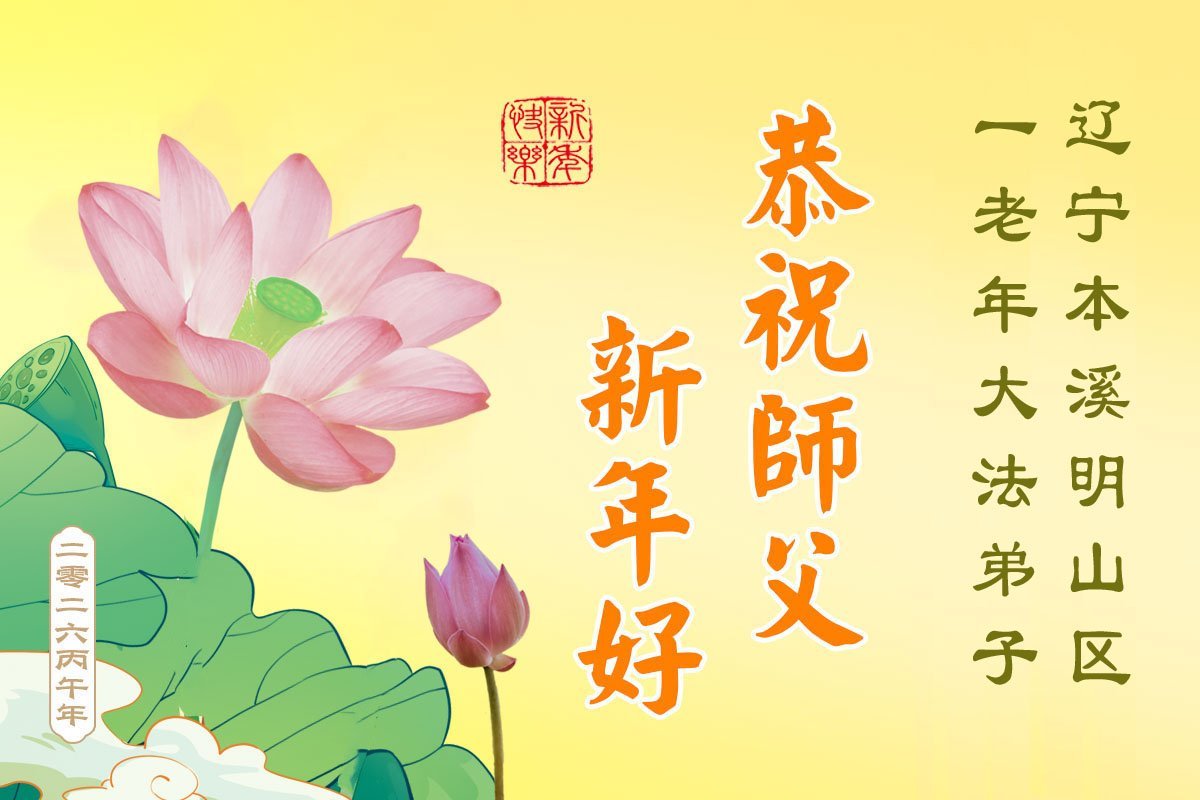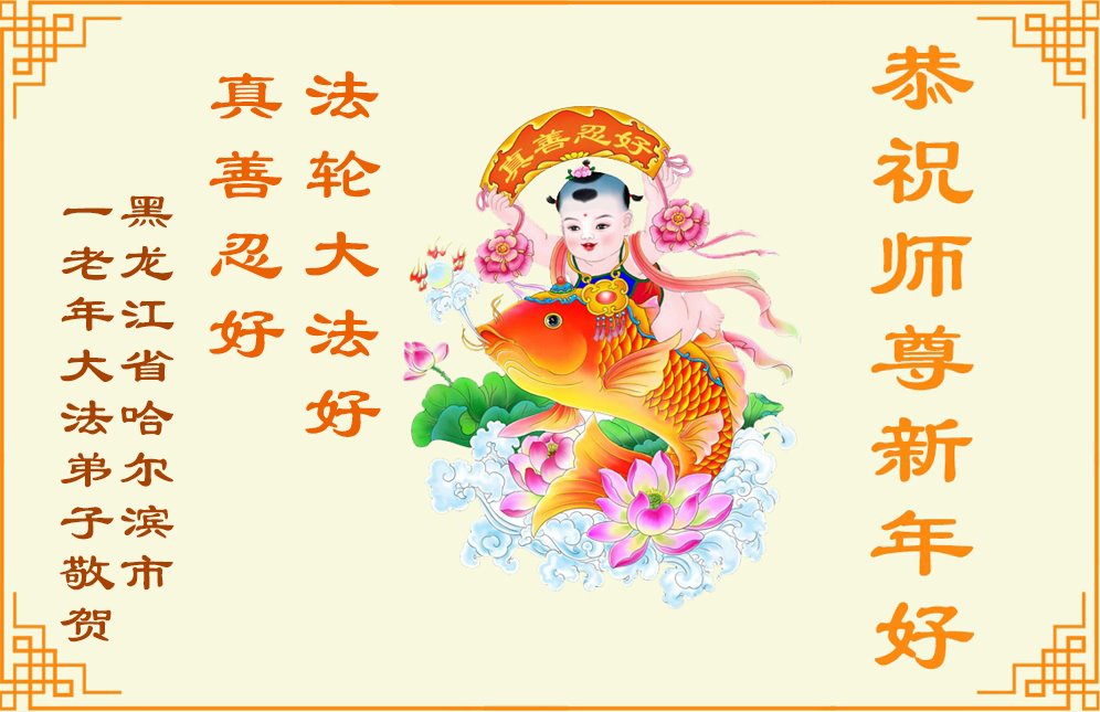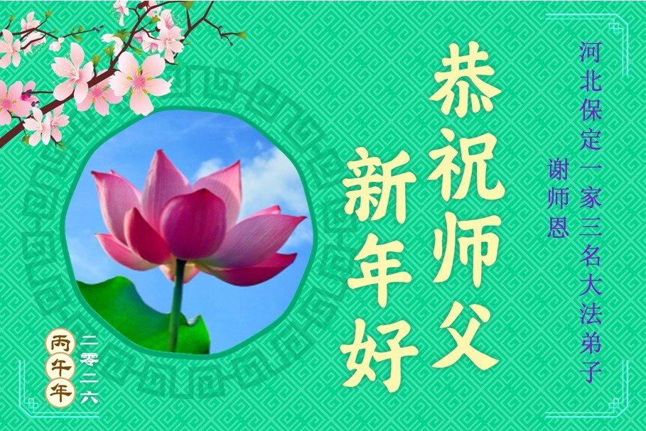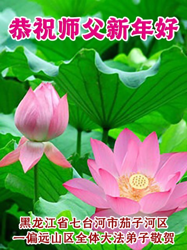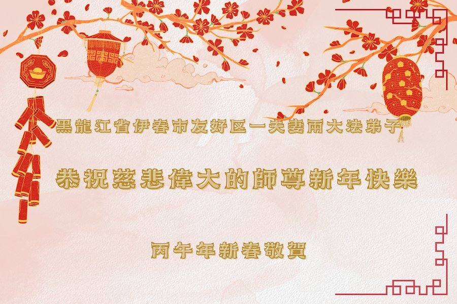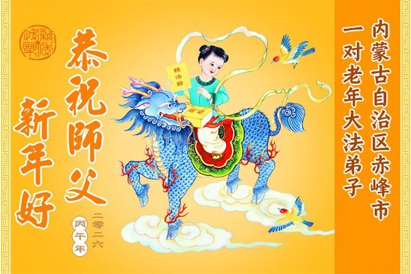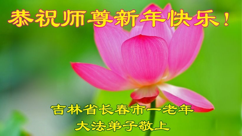 尊敬的李大師您好!您辛苦啦!我老伴修大法,我支持老伴修煉也受益。我得腦血栓時,是李大師救了我,我沒有留下後遺症,後來您還幾次幫我淨化身體。我每天都誠心敬念「法輪大法好、真善忍好。」我更感謝李大師多次救了我的命!我現在八十多歲了,身體很好,還能踩三輪車送老伴去比較遠的地方學法。全是托李大師的福。在新年到來之際,我給李大師拜個早年!謝謝您的慈悲救度,感恩李大師救命之恩!