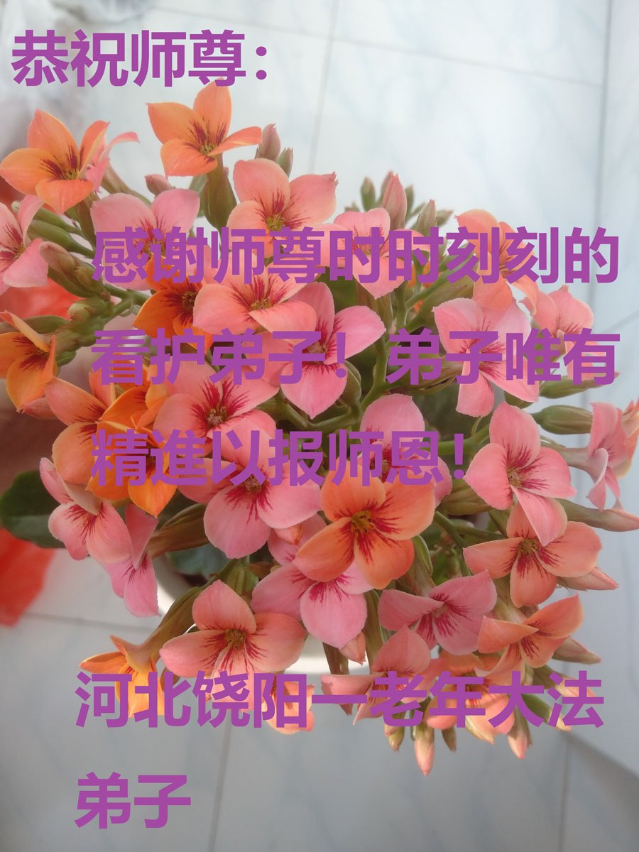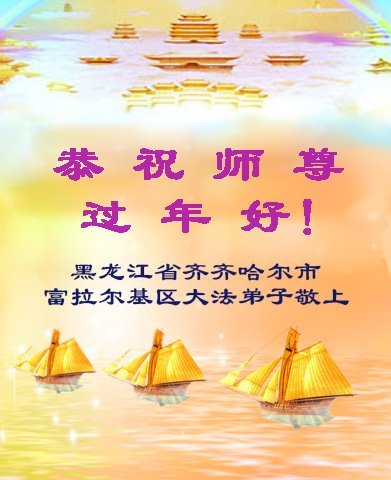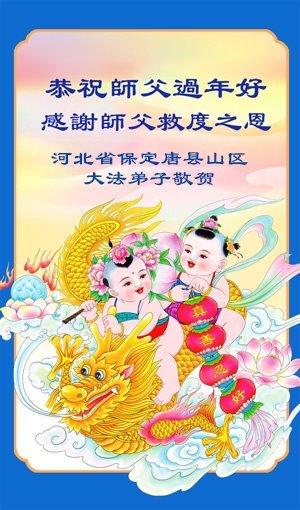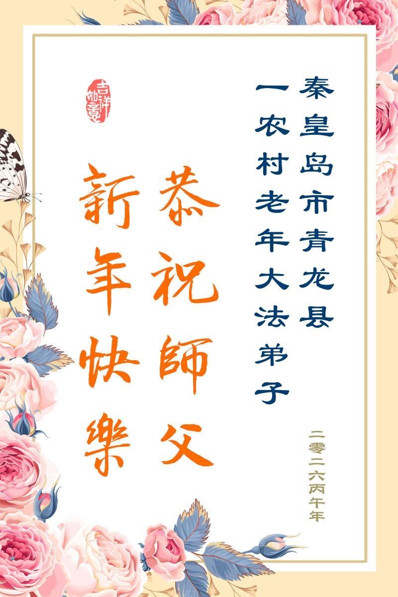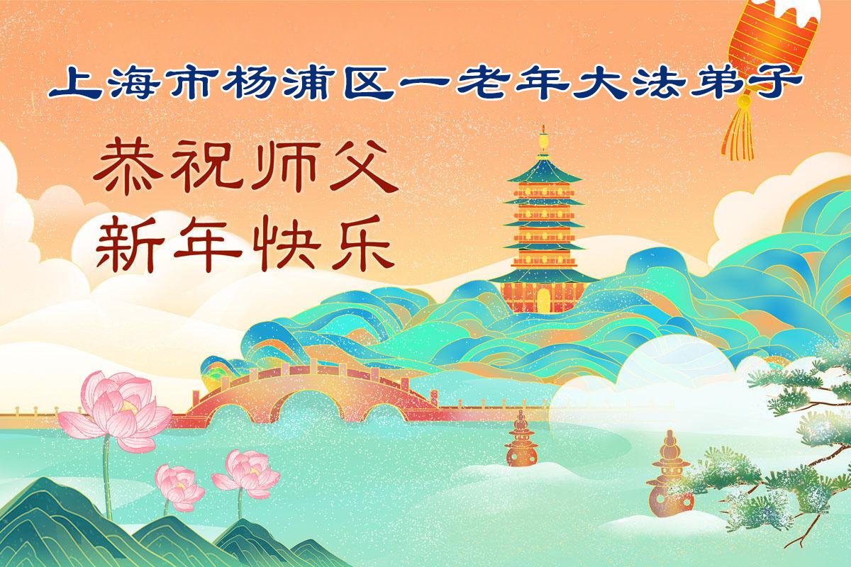 尊敬的李大師您好!您辛苦啦!我老伴修大法,我支持老伴修煉也受益。我得腦血栓時,是李大師救了我,我沒有留下後遺症,後來您還幾次幫我淨化身體。我每天都誠心敬念「法輪大法好、真善忍好。」我更感謝李大師多次救了我的命!我現在八十多歲了,身體很好,還能踩三輪車送老伴去比較遠的地方學法。全是托李大師的福。在新年到來之際,我給李大師拜個早年!謝謝您的慈悲救度,感恩李大師救命之恩!