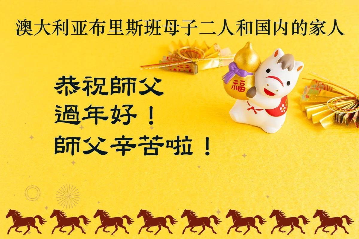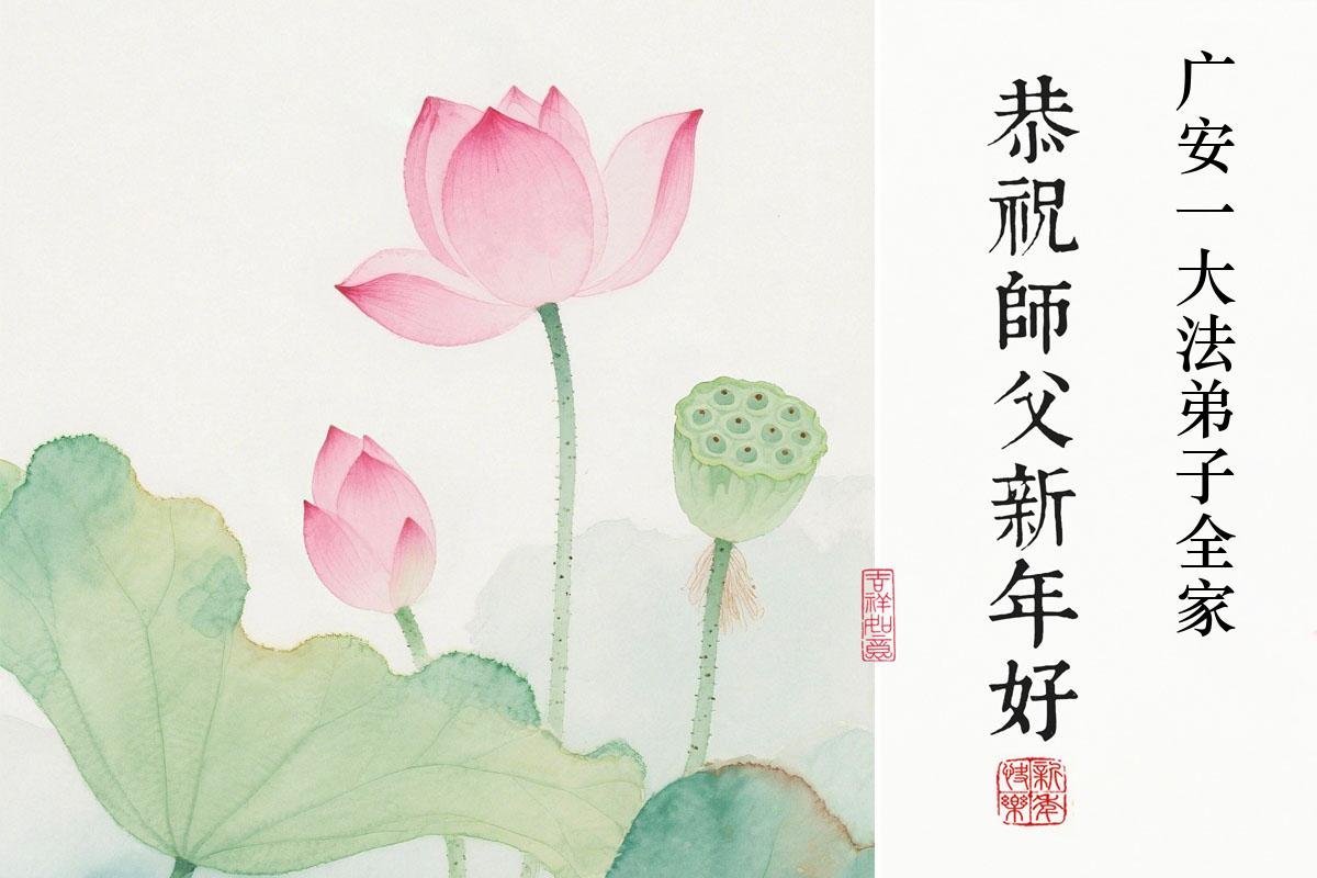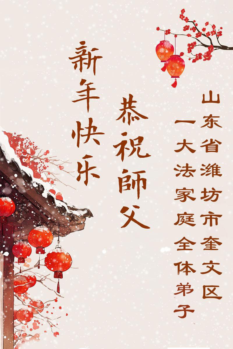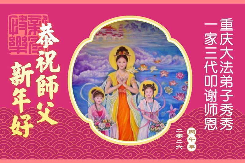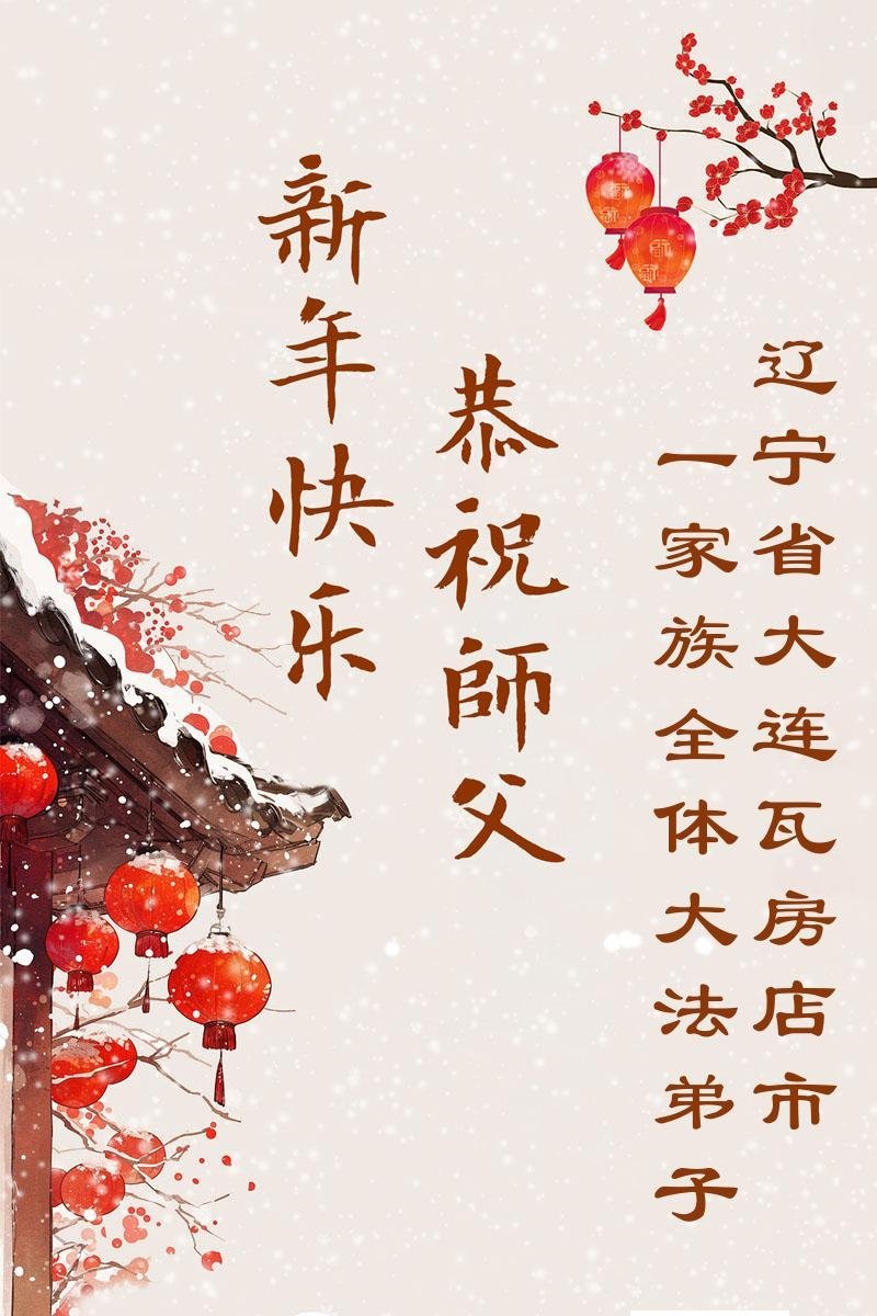 尊敬的李大師您好,您辛苦啦!在新年到來之際,我們一家給李大師拜個早年,祝李大師新年快樂!謝謝您的慈悲救度!