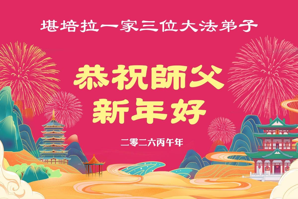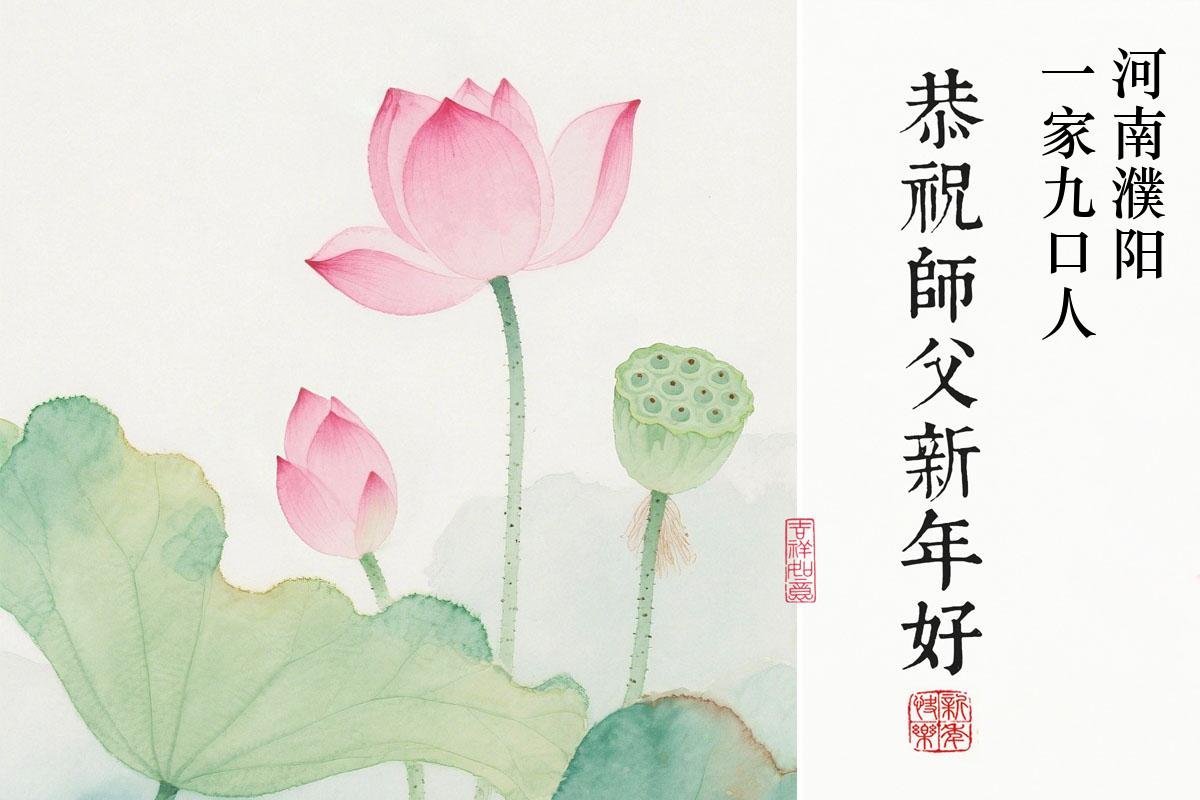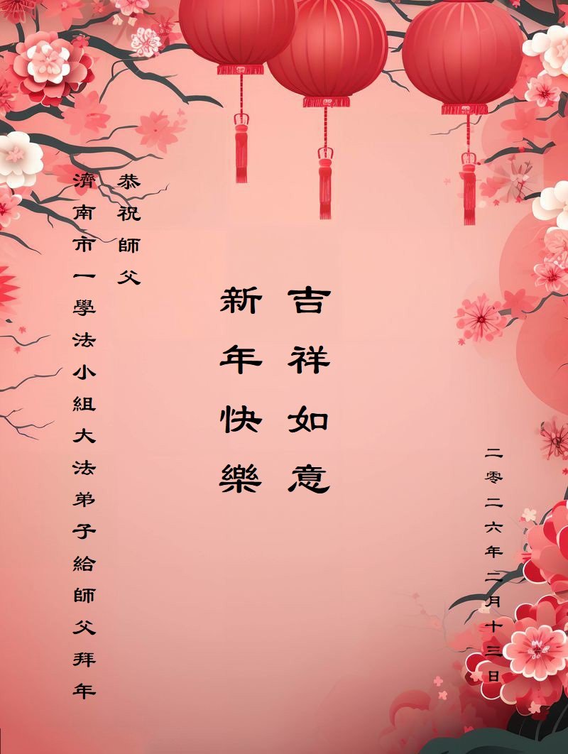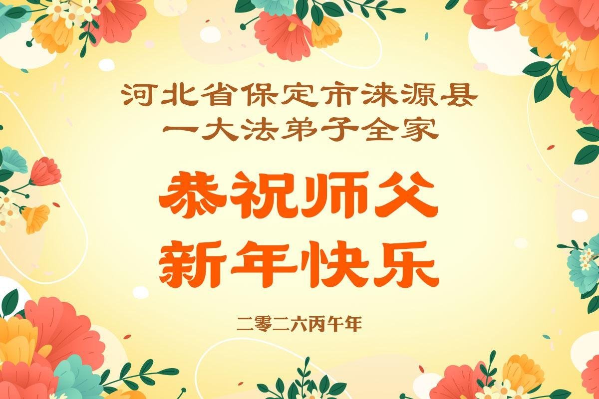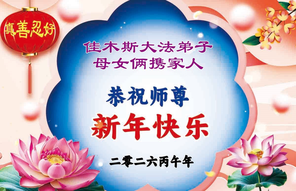 尊敬的李大師您好,您辛苦啦!在新年到來之際,我們一家給李大師拜個早年,祝李大師新年快樂!謝謝您的慈悲救度!