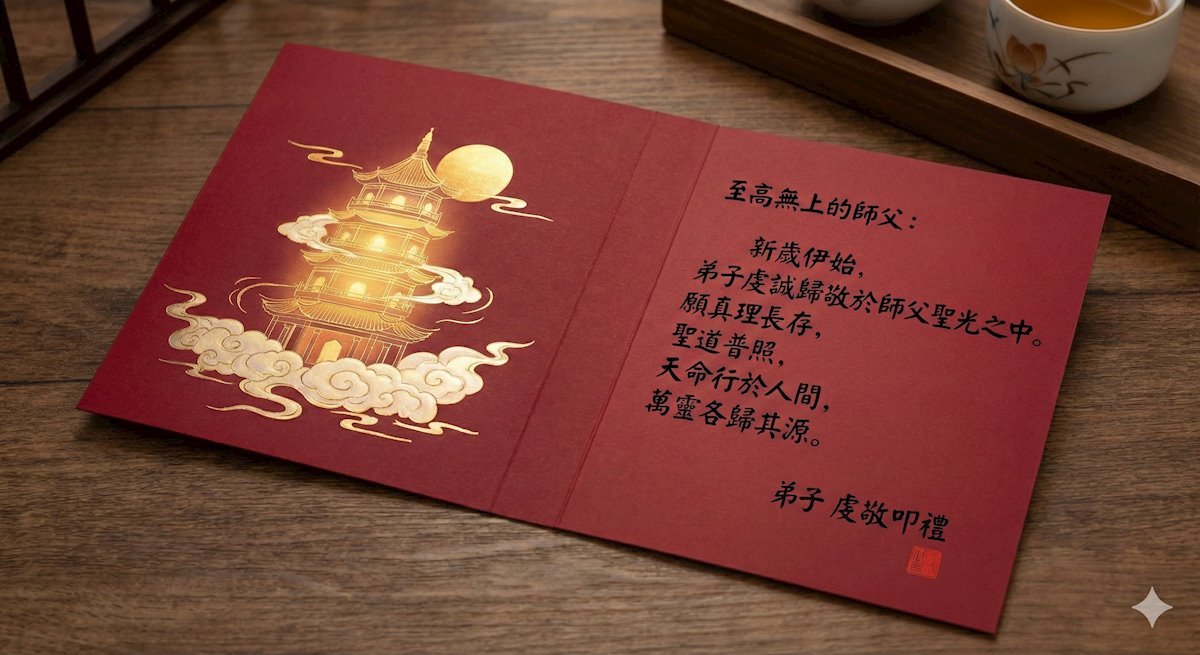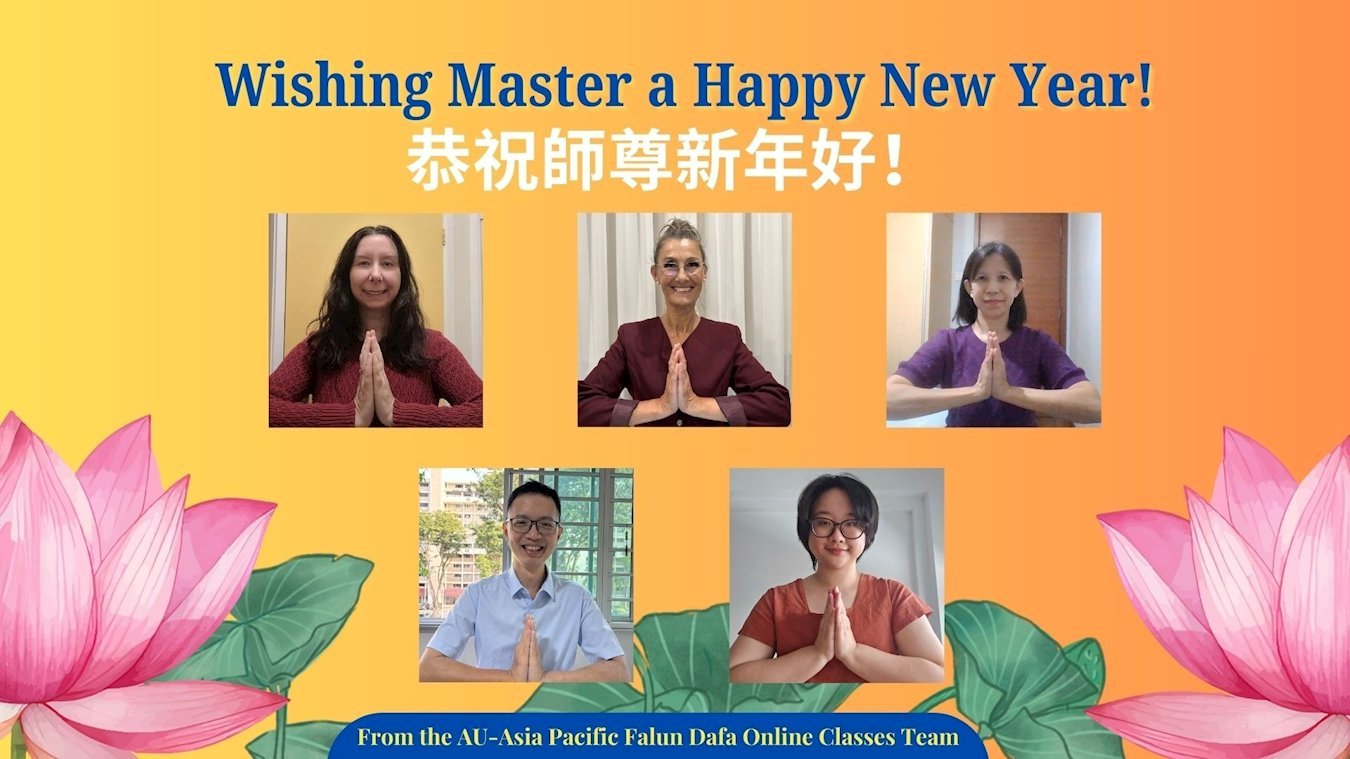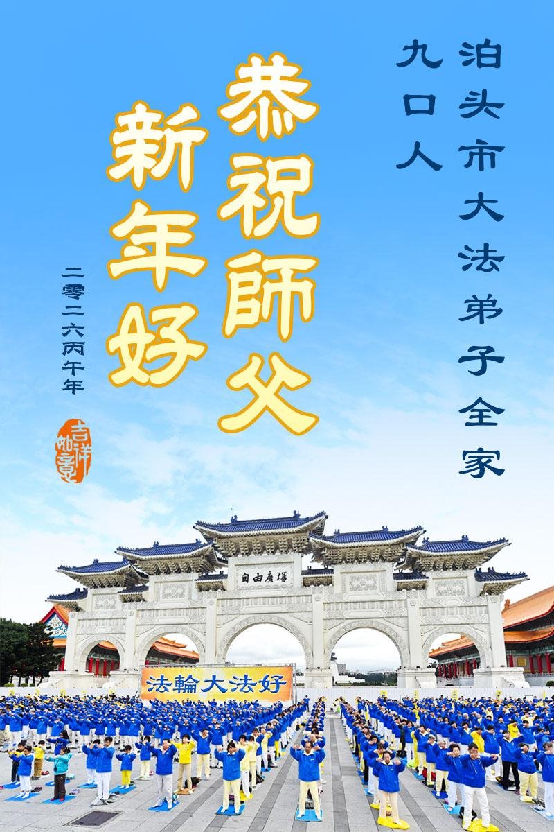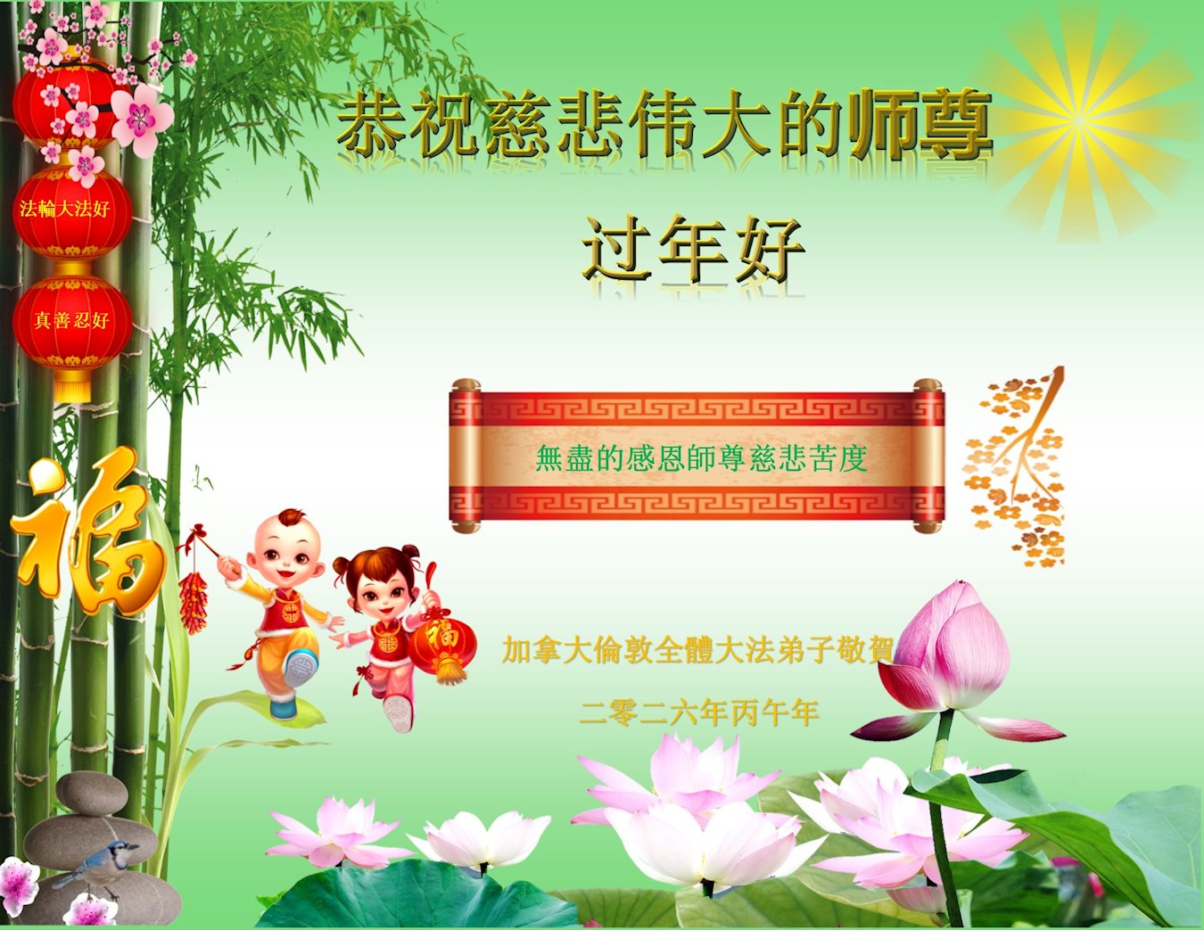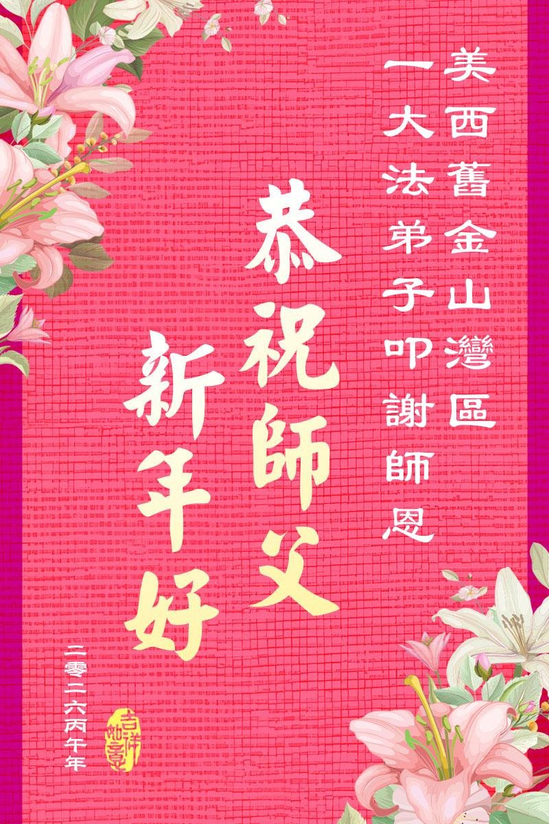 尊敬的李大師您好,您辛苦啦!在新年到來之際,我們一家給李大師拜個早年,祝李大師新年快樂!謝謝您的慈悲救度!
