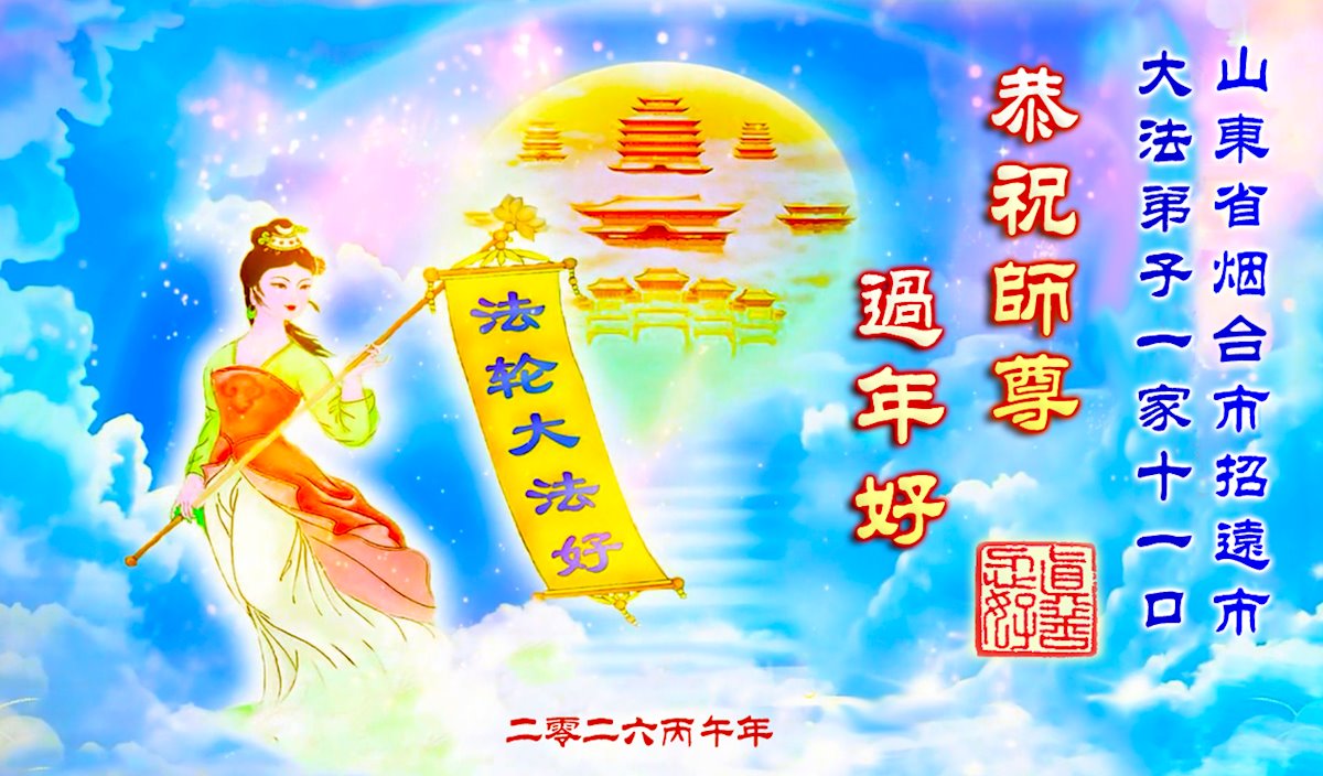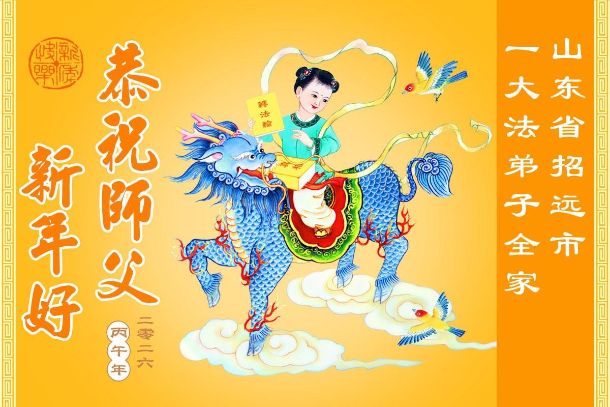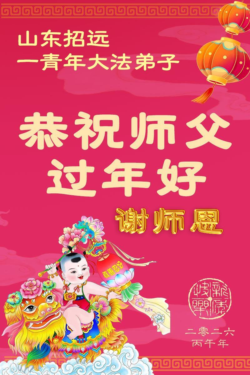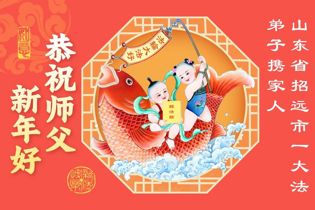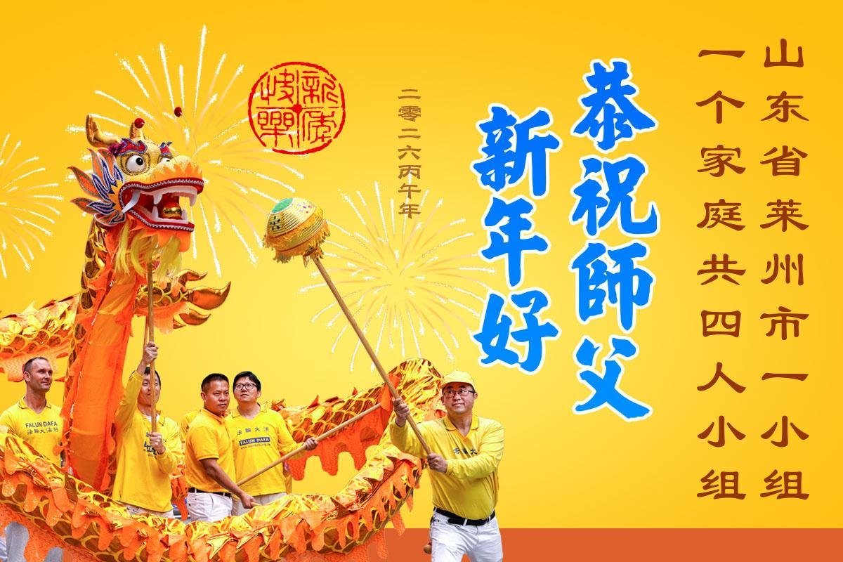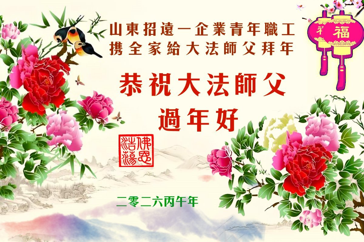山東省招遠市一企業青年職工攜全家給大法師父拜年!