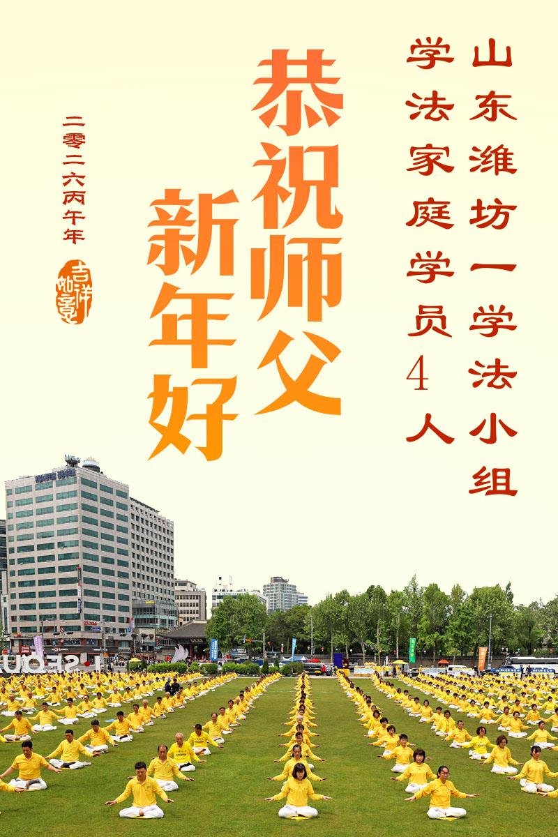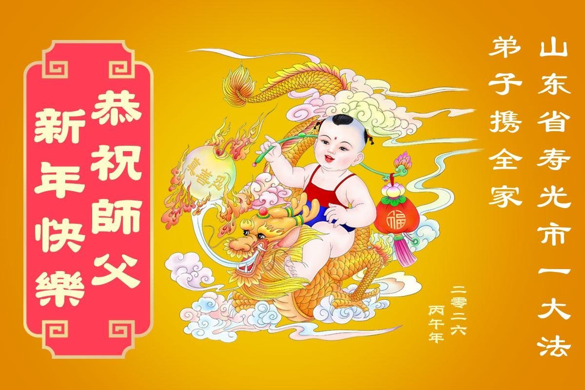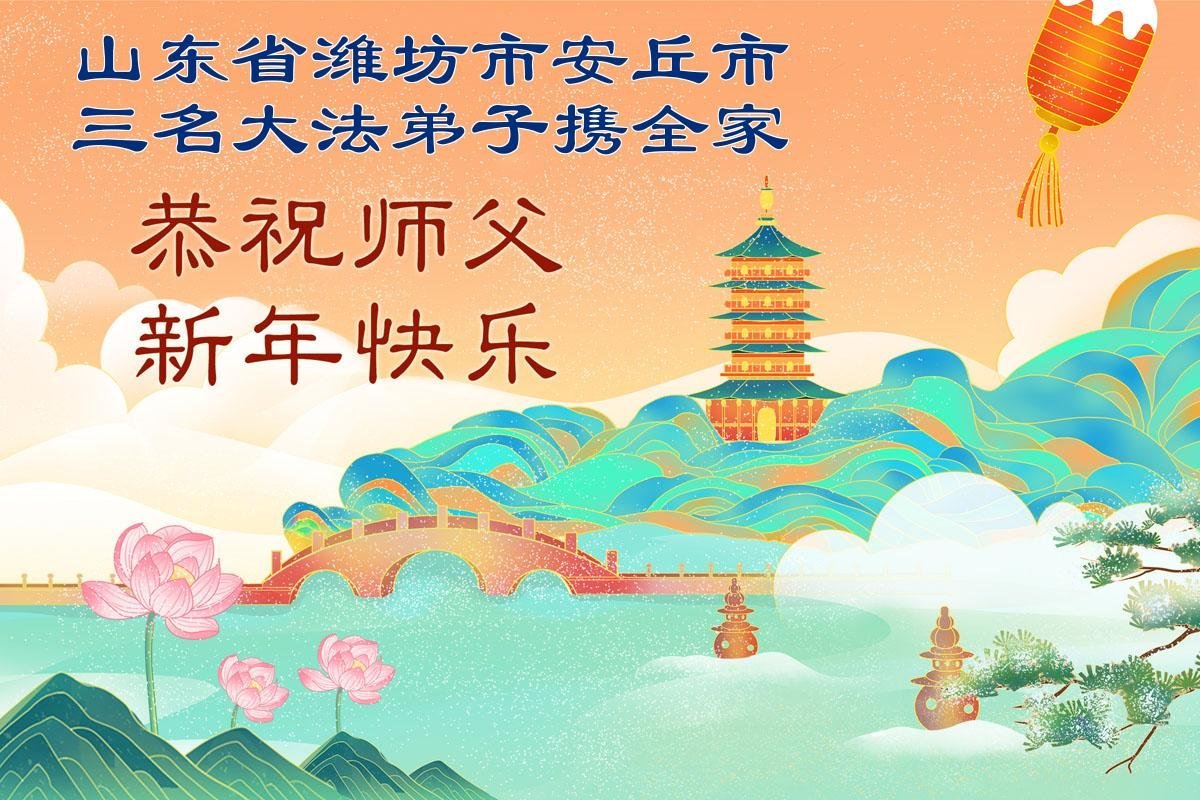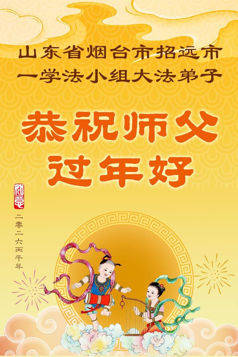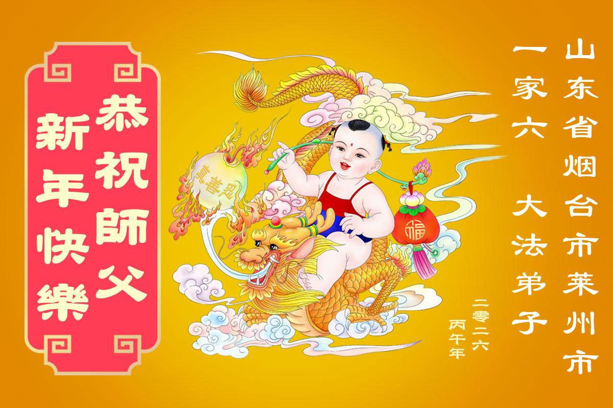山東省招遠市一企業青年職工攜全家給大法師父拜年!
