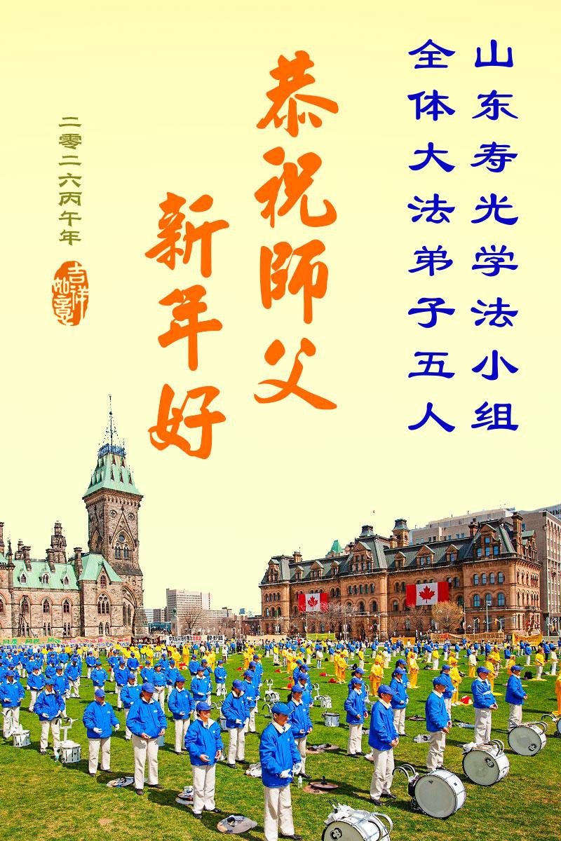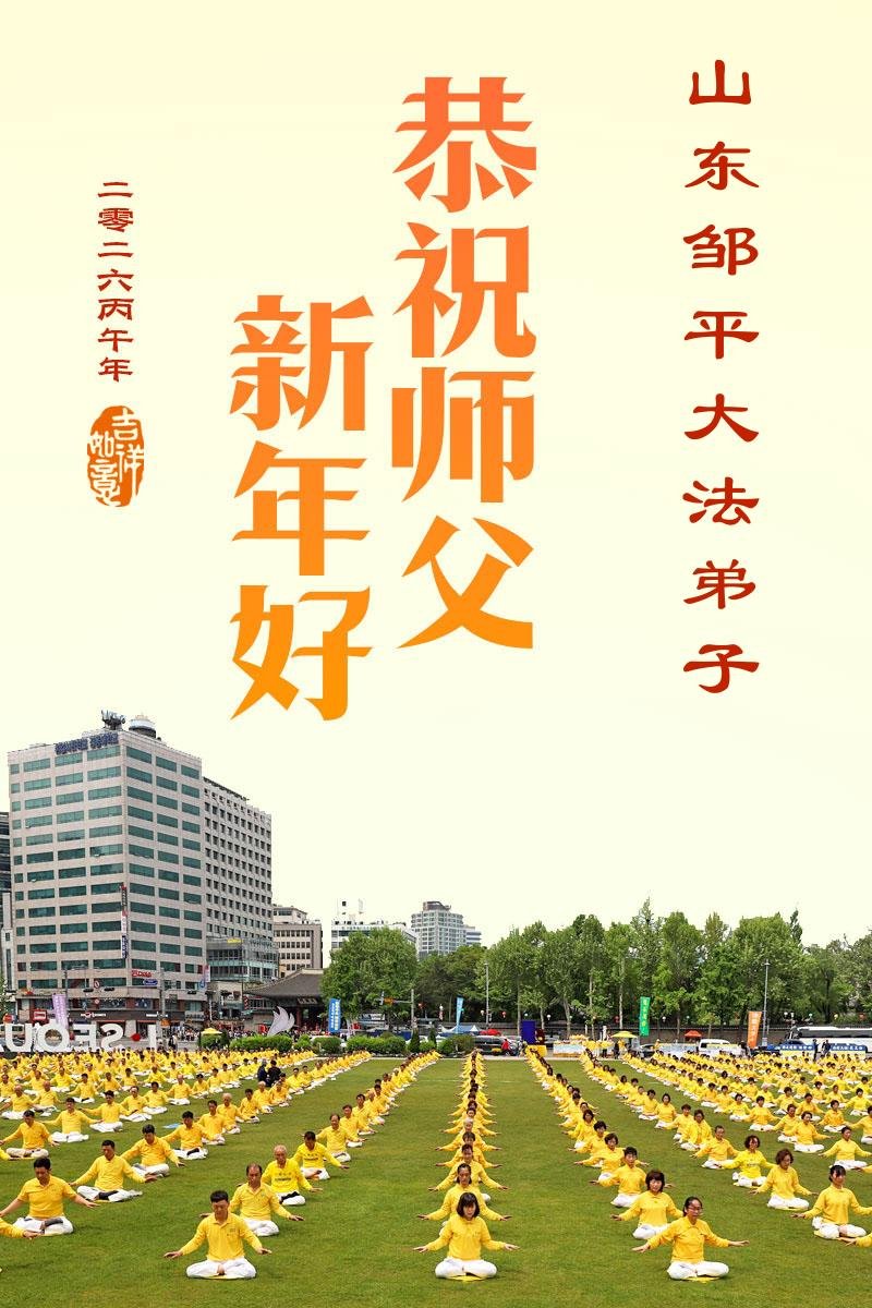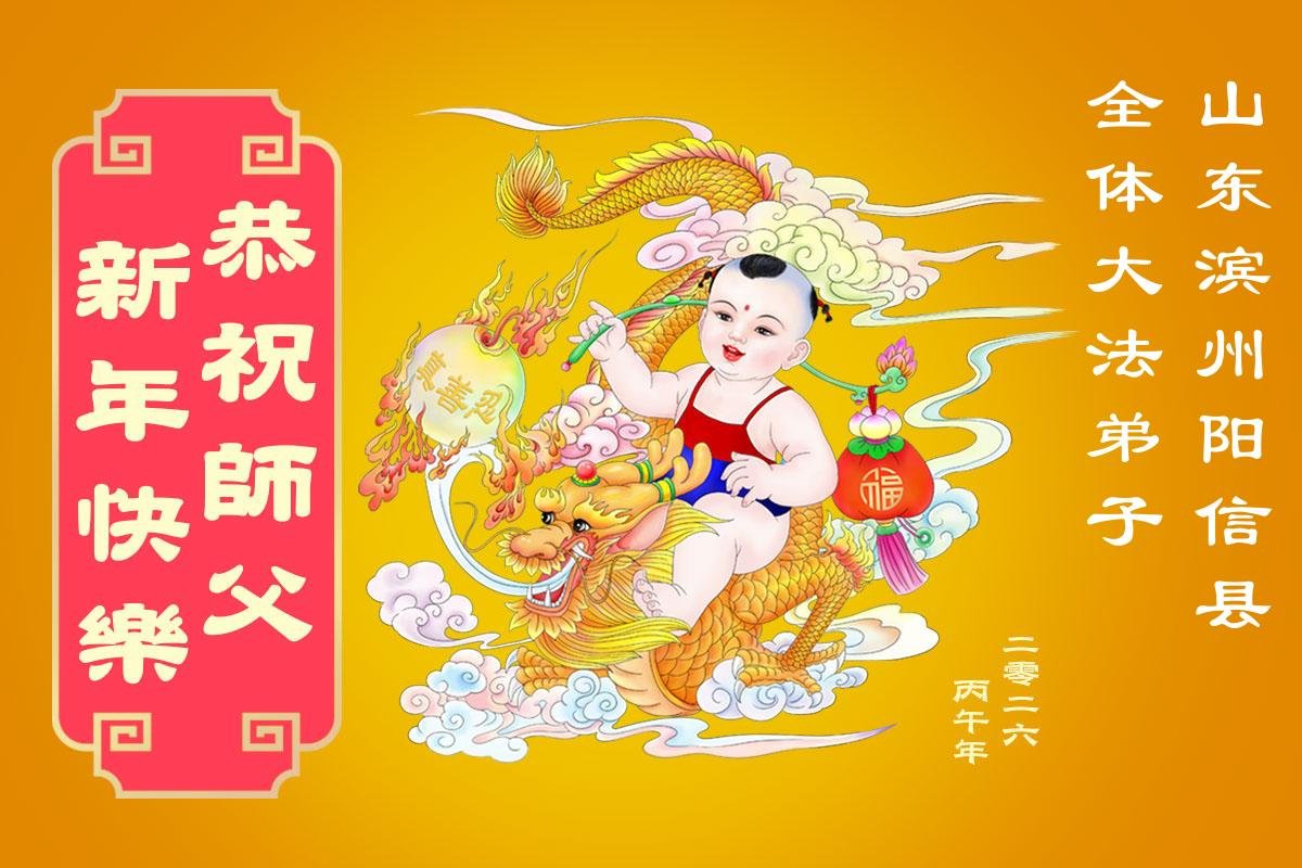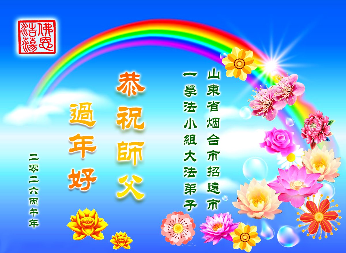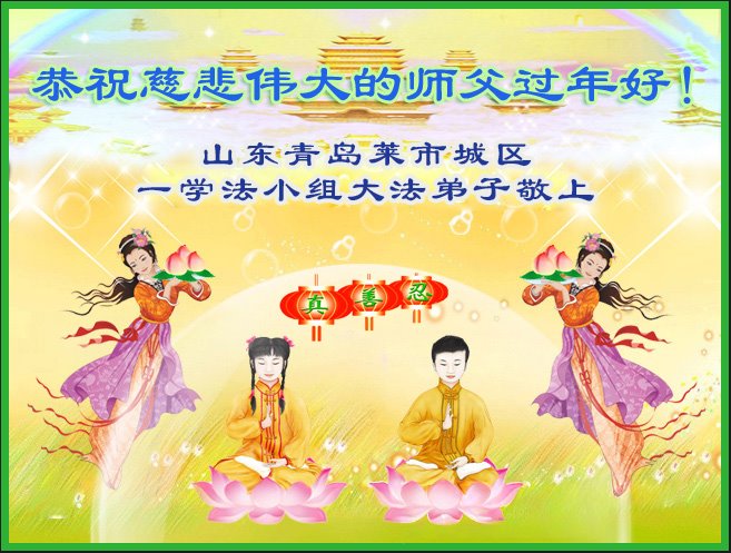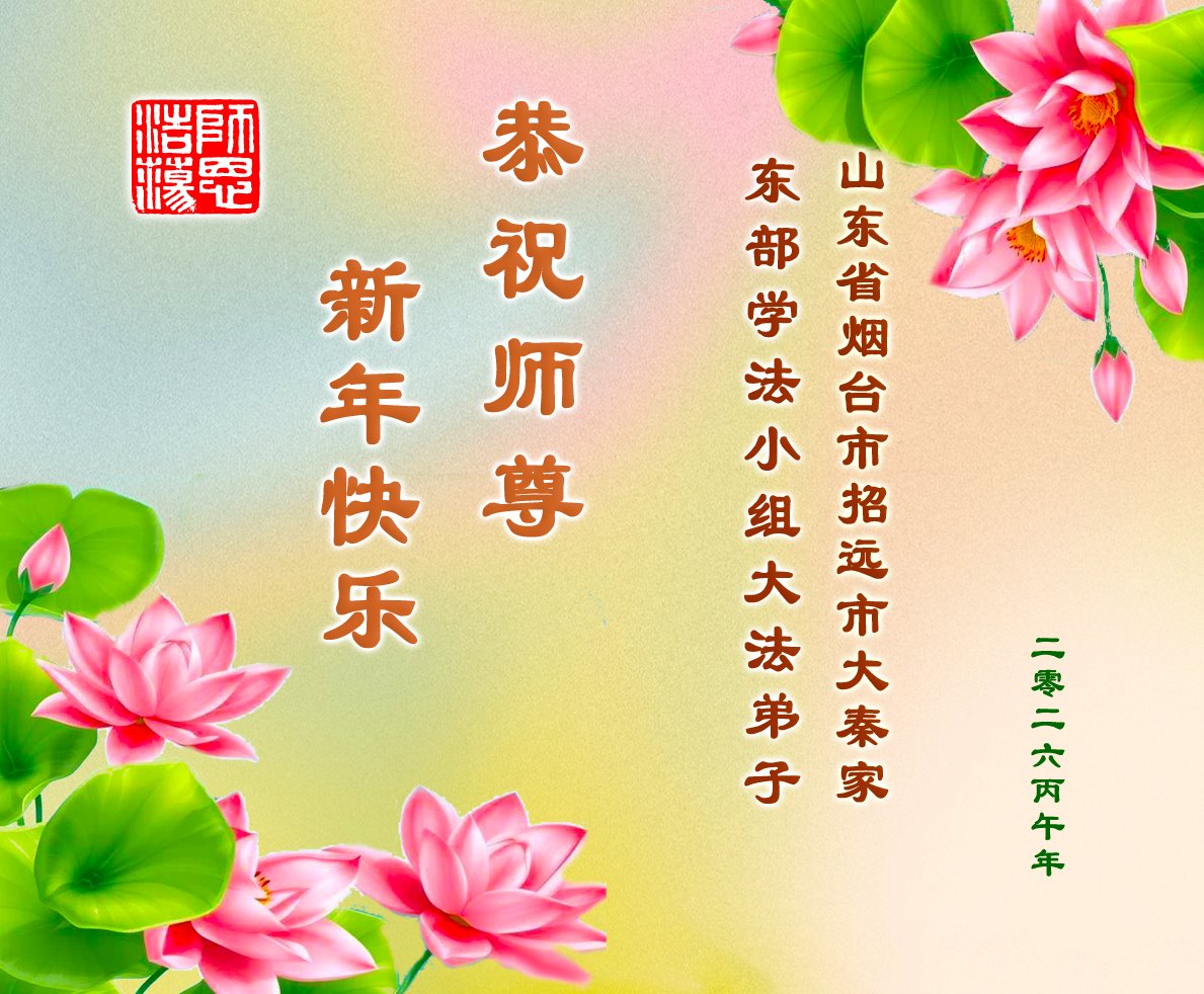 山東省招遠市一企業青年職工攜全家給大法師父拜年!