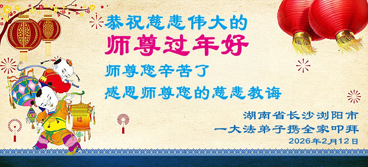 【明慧網二零二六年二月十八日】(明慧網通訊員綜合報導)中國各界百姓見證了法輪大法的神奇和威力,誠念「法輪大法好,真善忍好」,絕處逢生,逢凶化吉,得到大法給予的福報。在二零二六年中國傳統大年之際,明真相、得福報的中國各地百姓感謝李大師救度之恩,恭祝李洪志大師過年好!