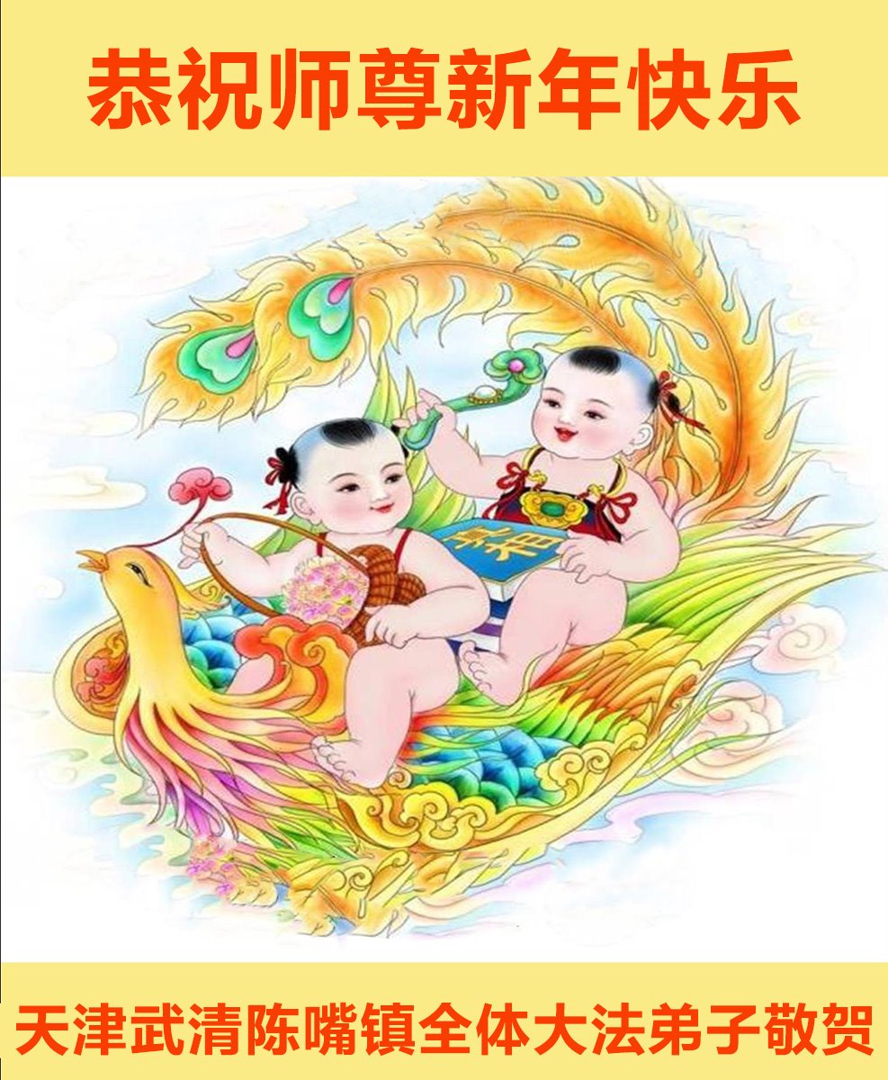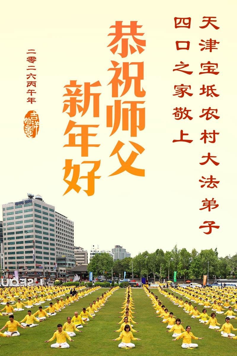 天津市武清區東馬圈鎮一名大法弟子攜全家恭祝慈悲偉大的師尊新年快樂!