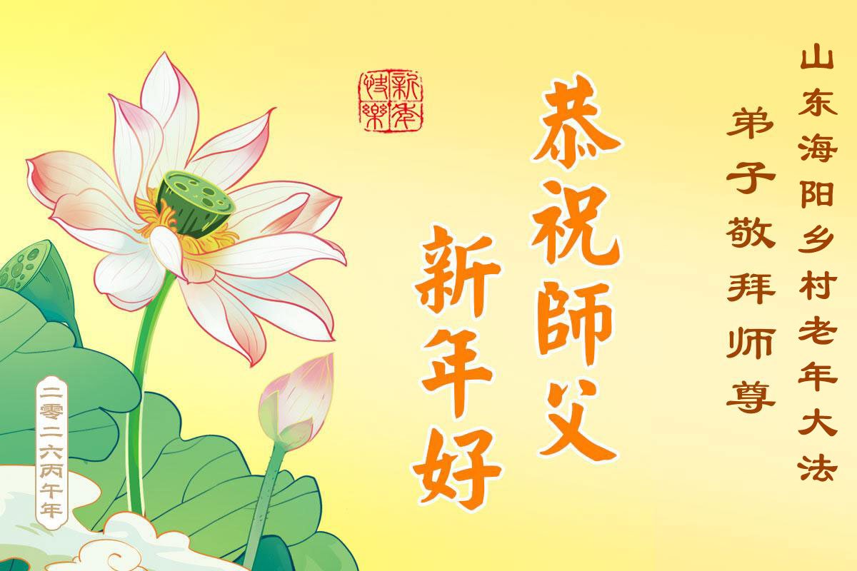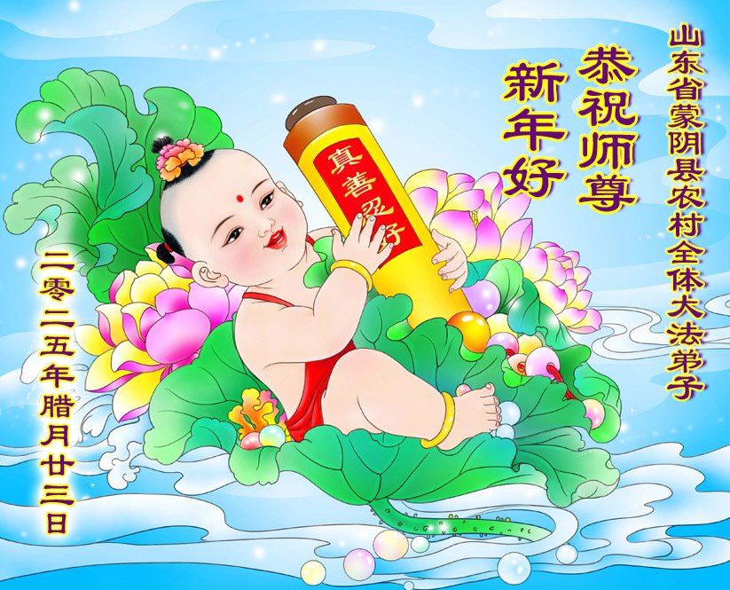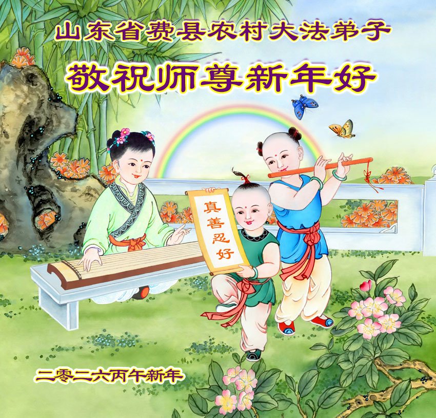 我們這些鄉下人不認識幾個字,不知道怎樣才能表達出我對您的感恩。新年到了,我們要對您說一聲:謝謝您,慈悲偉大的大法師父!世人有救了,您是我們得救的唯一希望!法輪大法好,真善忍好!