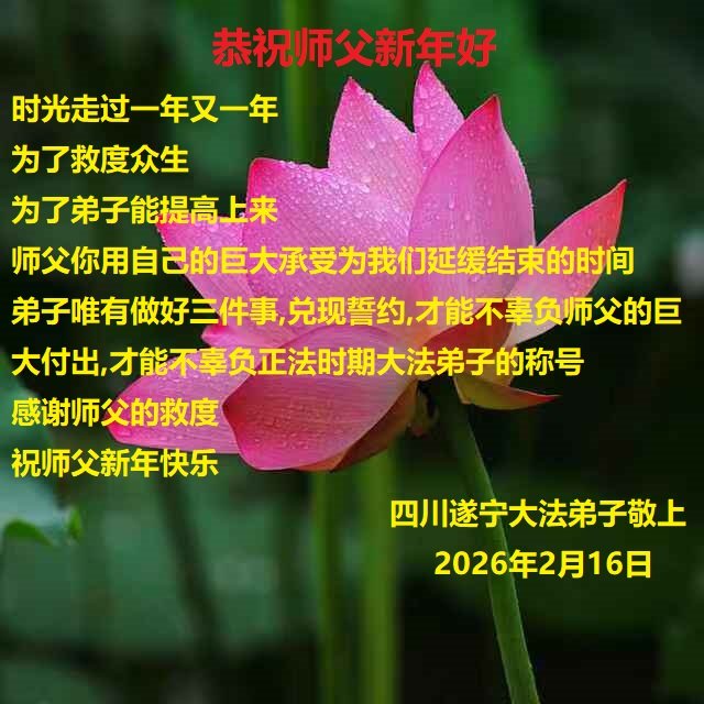 四川省遂寧市一大法弟子家屬恭祝大法師父新年快樂!