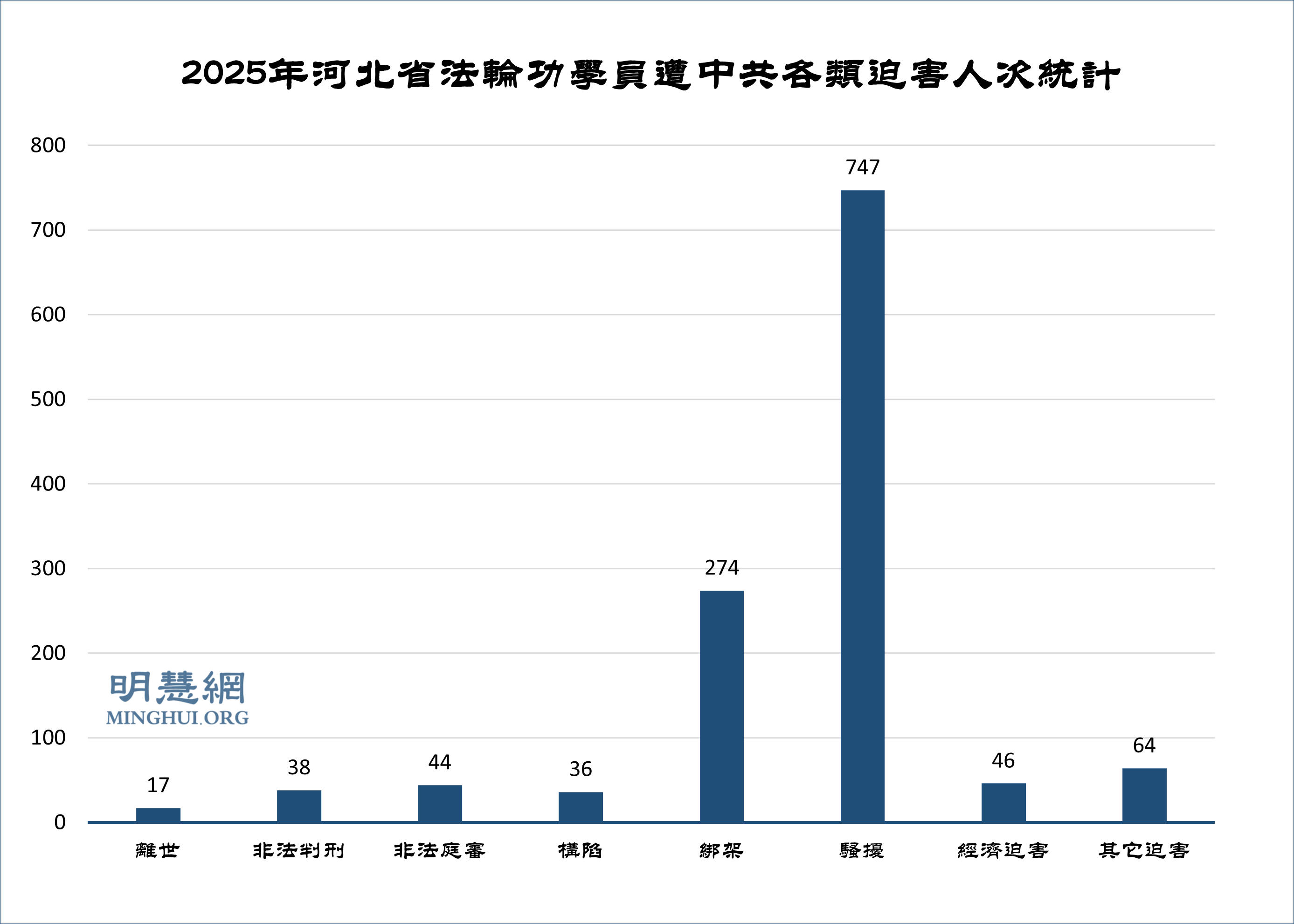 ![]() 圖2:2025年河北省法輪功學員遭中共各類迫害人次統計 |