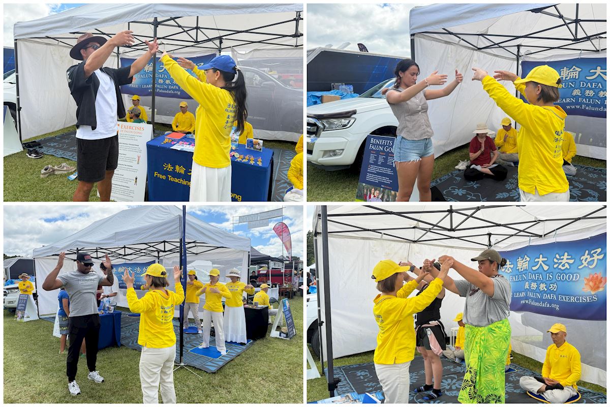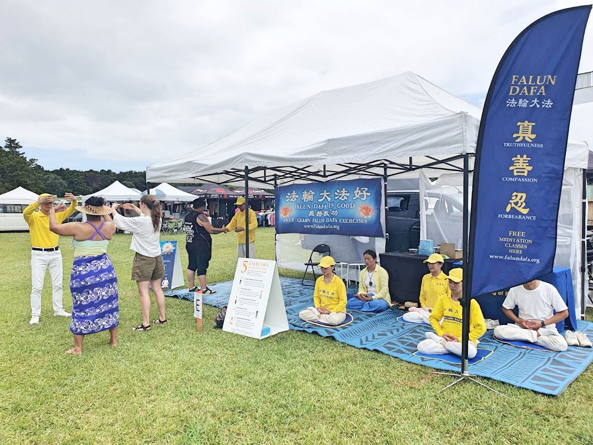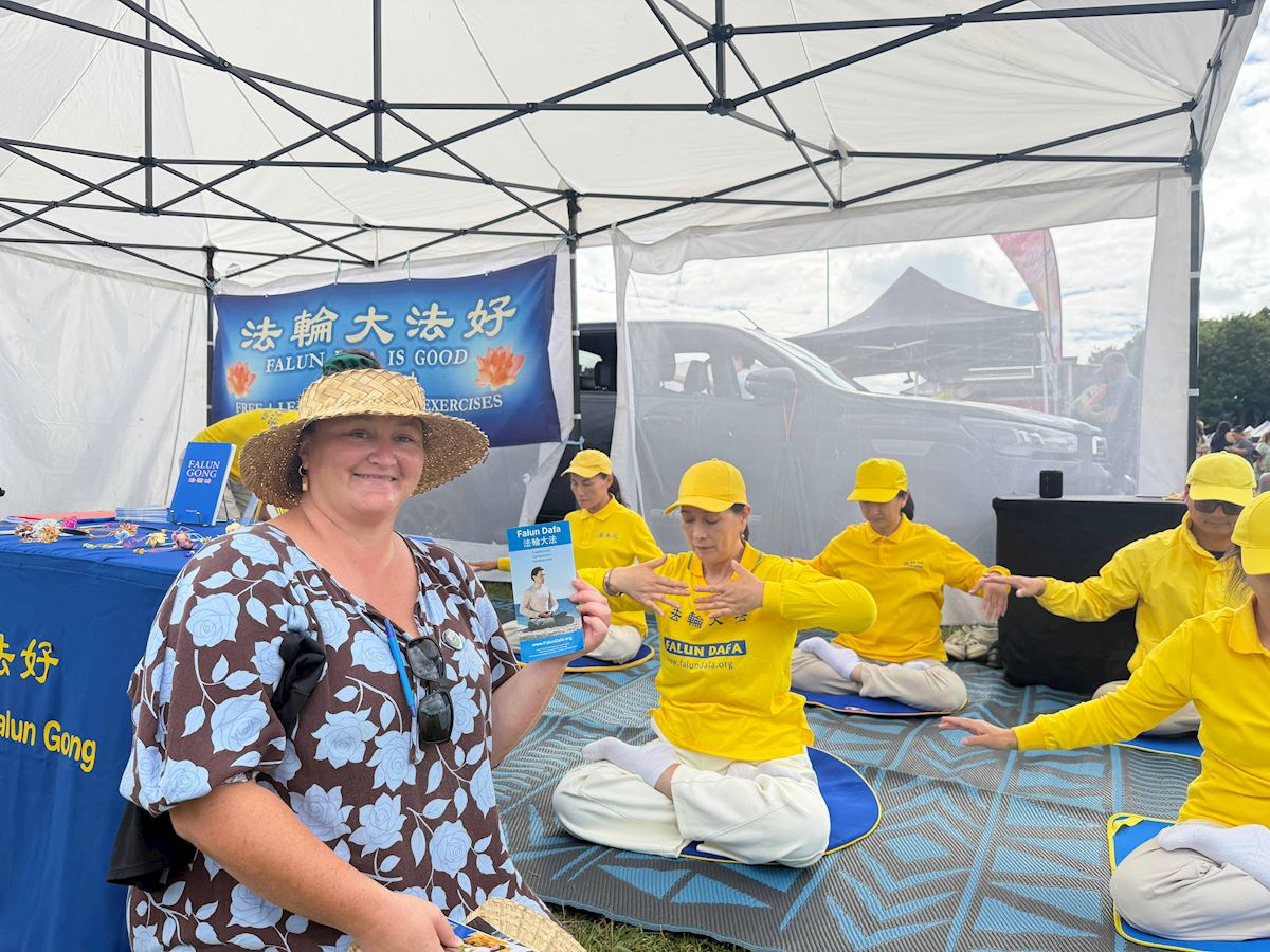 活動期間,現場節慶氣氛熱烈,舞台演出精彩紛呈,一百五十多個市集攤位彙集了藝術、手工藝、服飾與各式美食。在熱鬧的節日氛圍中,法輪大法展位以其寧靜祥和的氛圍,吸引了絡繹不絕的路人前來體驗功法、交流感受。不少人表示,在短暫的煉功體驗中,重新找回了內在的平衡、善意與對生命的敬畏。