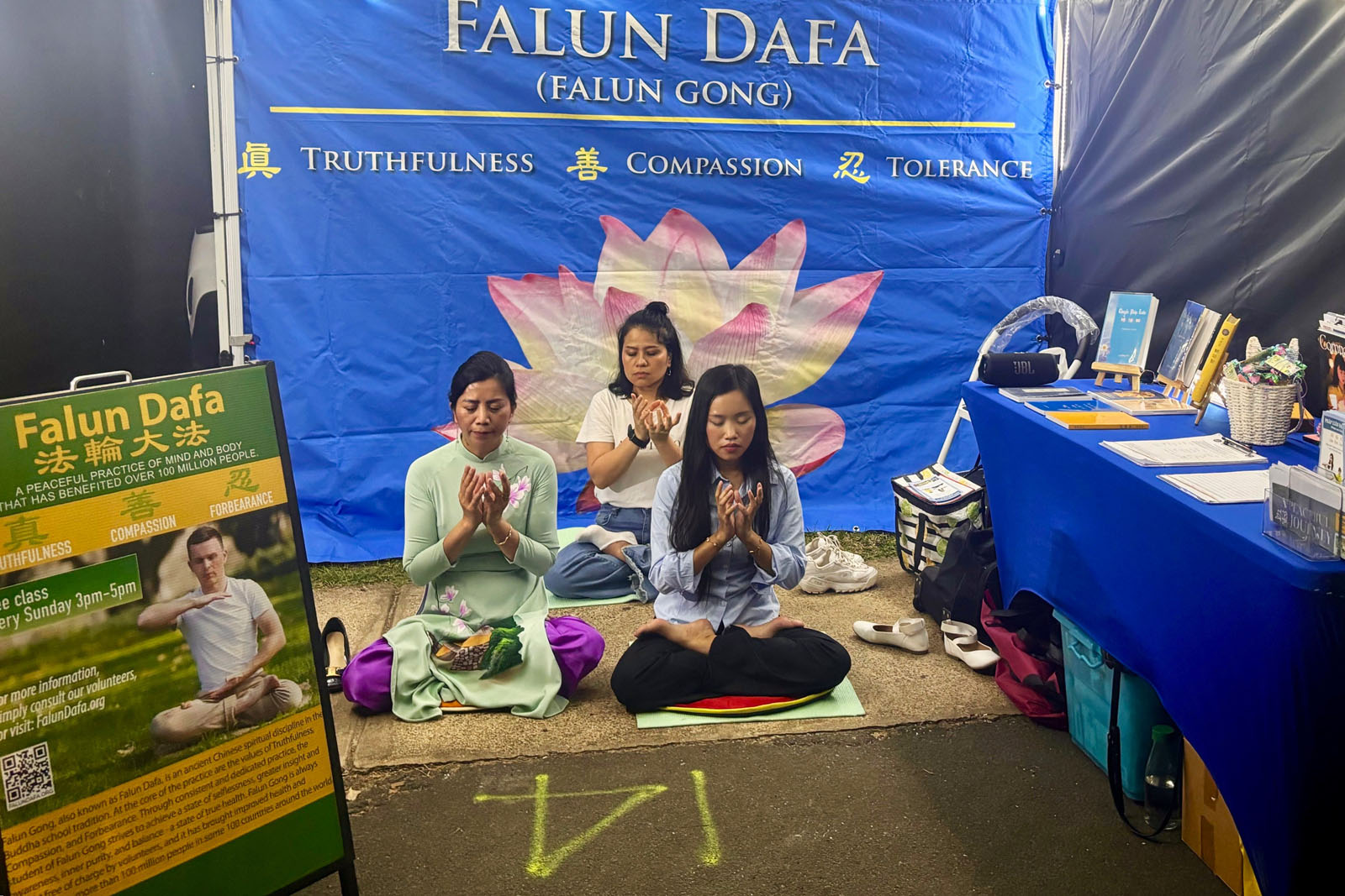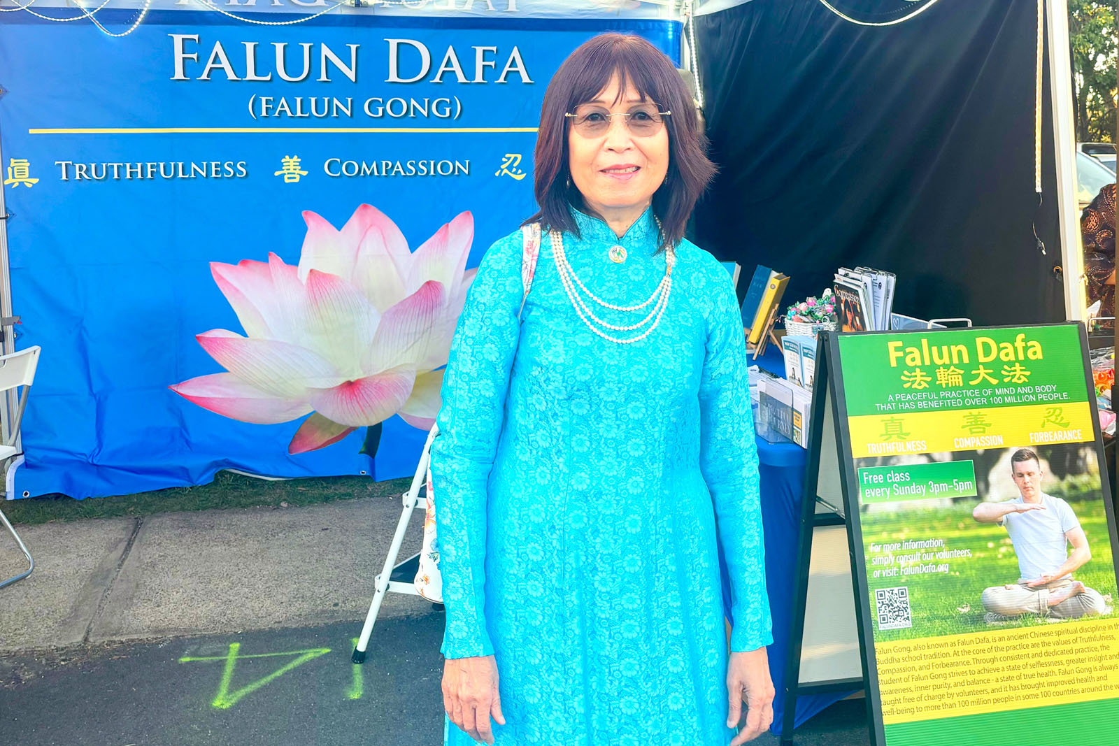 法輪功學員的展位坐落在人潮湧動、歡慶的傳統節日慶典上,身著傳統服飾的越裔法輪功學員向各族裔民眾介紹法輪大法的美好,展示法輪功五套功法,並分享他們喜得大法的經歷與感悟,修煉法輪功為他們帶來了內心的寧靜和健康的身體。不少民眾來到展位了解真相,他們讚賞真、善、忍永遠是好的,是社會基石。