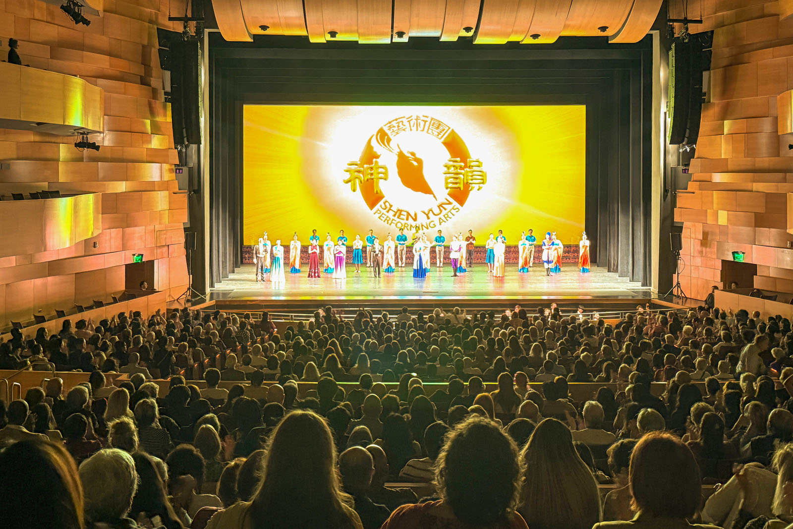 ![]() 圖1:二零二六年二月二十八日,神韻新紀元藝術團在澳洲黃金海岸藝術中心(HOTA Home of the Arts)一天兩場演出,下午場門票售罄,晚場爆滿。圖為當天晚場演出結束後,神韻藝術家向觀眾謝幕。 |