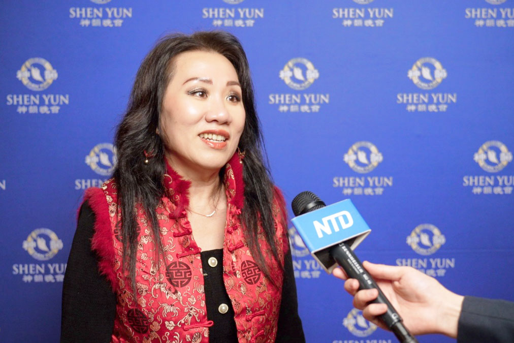 「(神韻)這種舞姿只有天上有,所以感覺像仙女下凡,很飄逸,如水袖等節目。還有他們的服飾非常精彩,我覺得整個配合非常完美,就是讓人覺得好像在天上的感覺。」