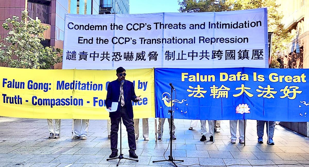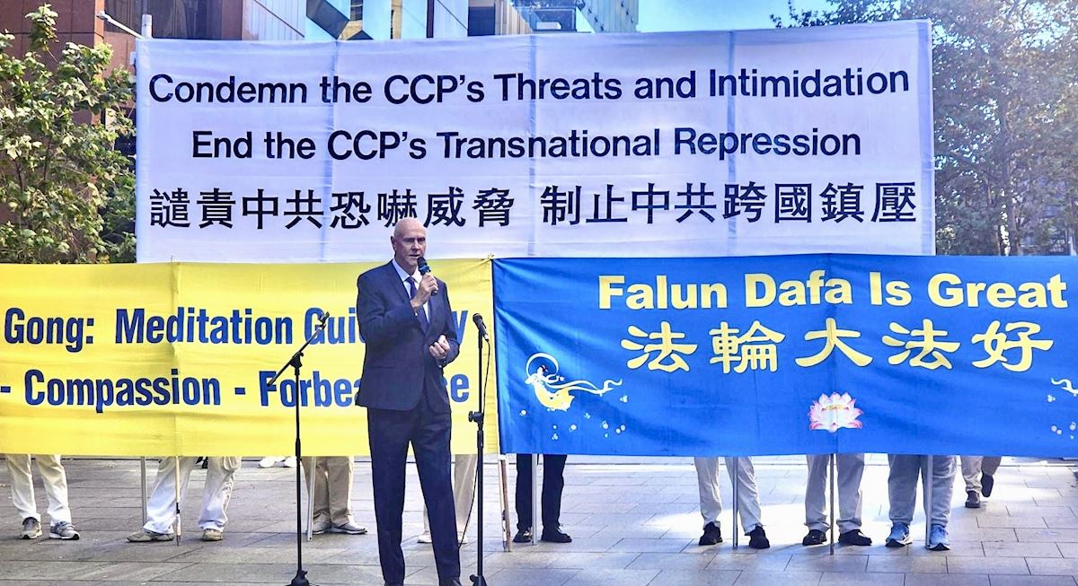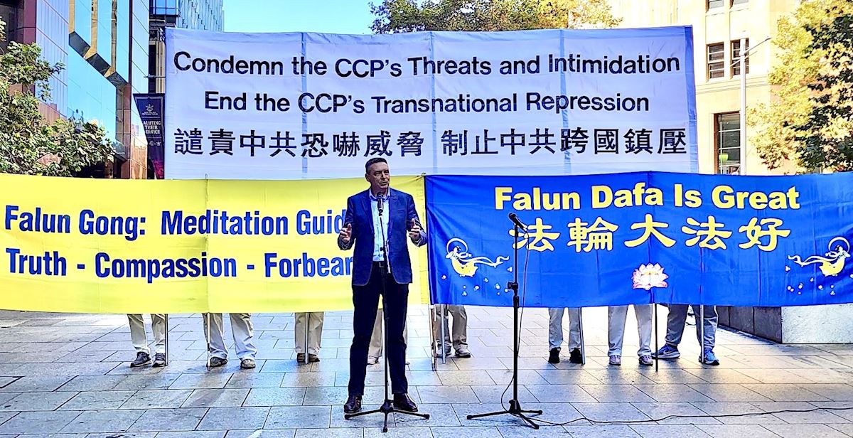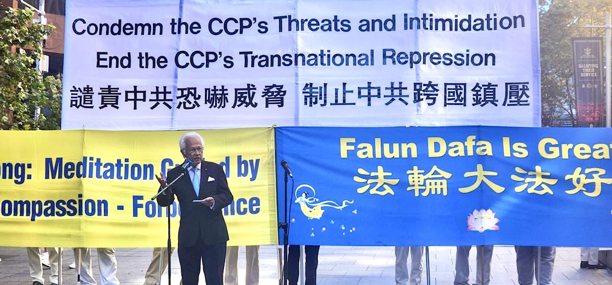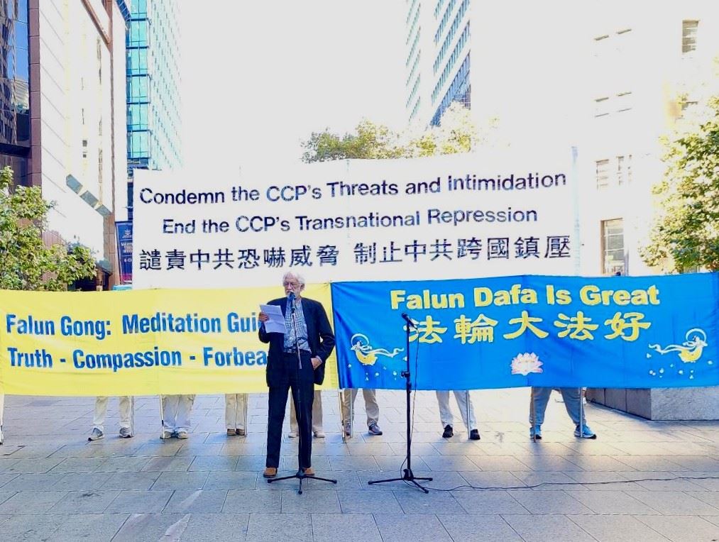 「我們今天聚集於此,是為了提高公眾對法輪功遭遇的認識,因為這正是中國人民,以及澳洲或其它國家受中共控制的人們所正在遭遇的縮影。」澳洲法輪大法學會發言人約翰‧戴樂(John Deller)在集會上表示。