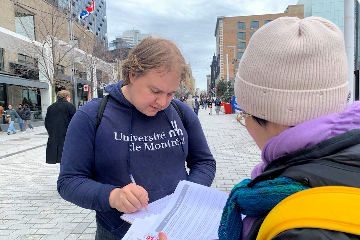![]() 圖1~7:二零二六年四月四日和四月十一日兩個週末,蒙特利爾法輪功學員在市中心傳真相、徵簽,呼籲公眾關注中共對法輪功的殘酷迫害,揭露中共將迫害延伸到海外的罪行。 |