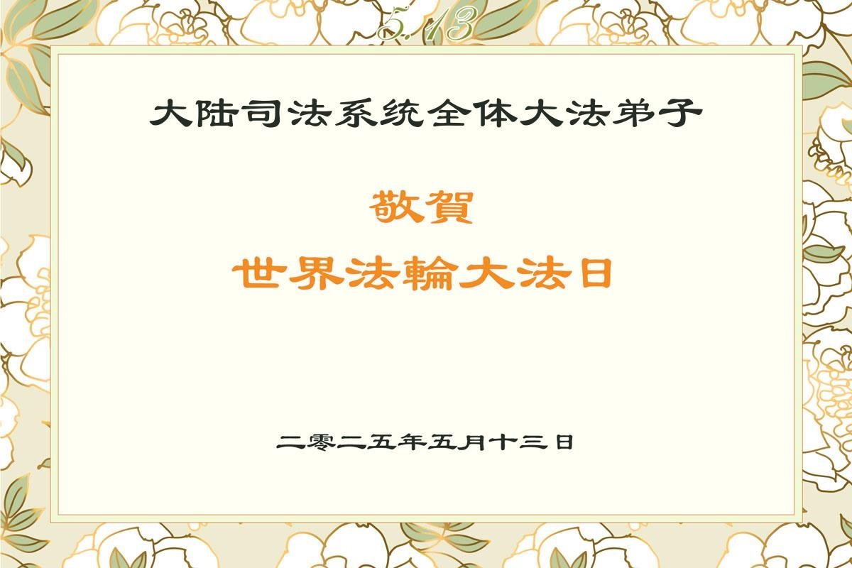 中國大陸司法系統全體大法弟子敬賀世界法輪大法日!