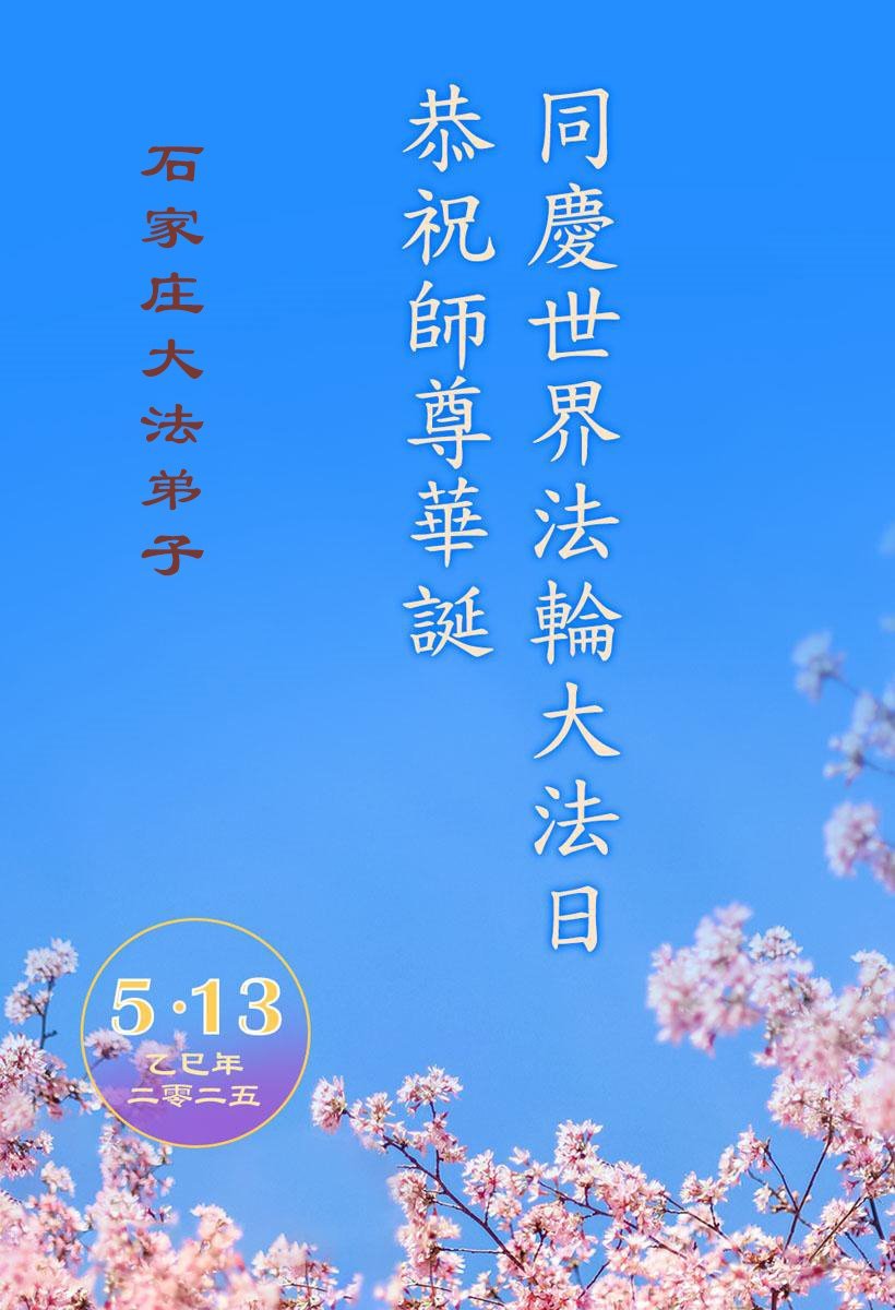 【明慧網二零二五年五月九日】 河北省石家莊市長安區一大法弟子學法組恭賀世界法輪大法日!