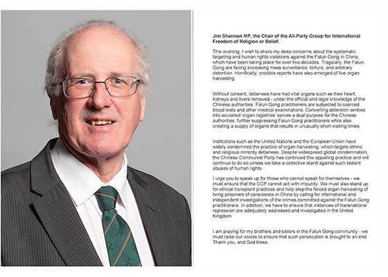 英国多位政要谴责中共 吁国际制止活摘暴行