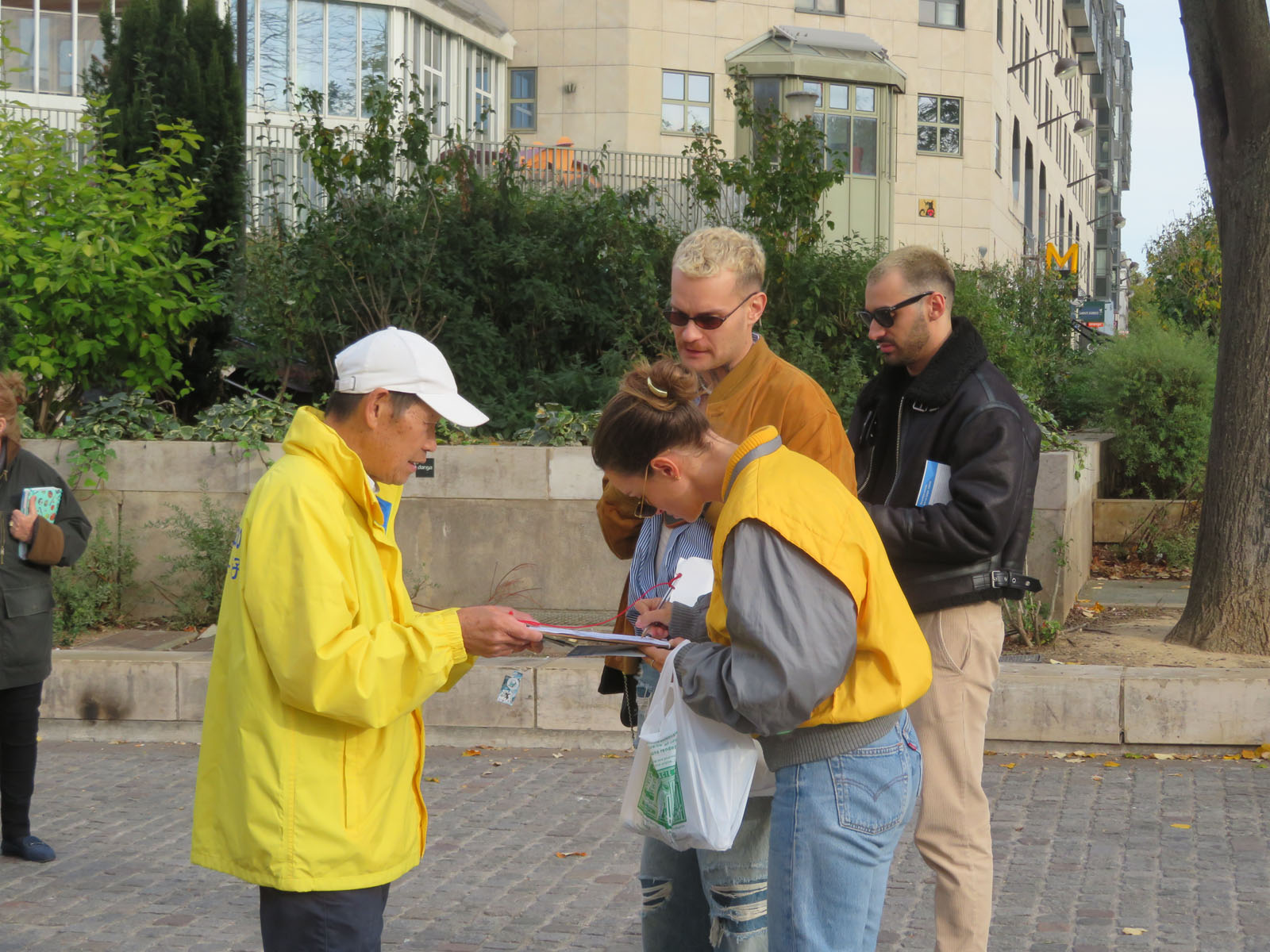 ![]() 圖5~9:人們在徵簽表上簽字,反對中共迫害法輪功。 |