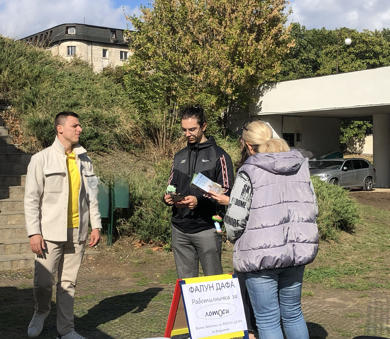 兩天活動期間,訪客絡繹不絕。在一張小桌上,擺放著保加利亞文的法輪大法書籍──《轉法輪》和《法輪功》以及其他真相資料。功法演示引起了健康節參觀者的濃厚興趣。有些人想學煉功法,當地法輪功學員告訴他們煉功點的地點。