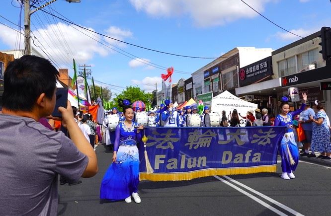 九月六日,由法輪功學員組成的天國樂團和腰鼓隊參加了悉尼查茨伍德(Chatswood)舉行的迎春慶典遊行活動。
