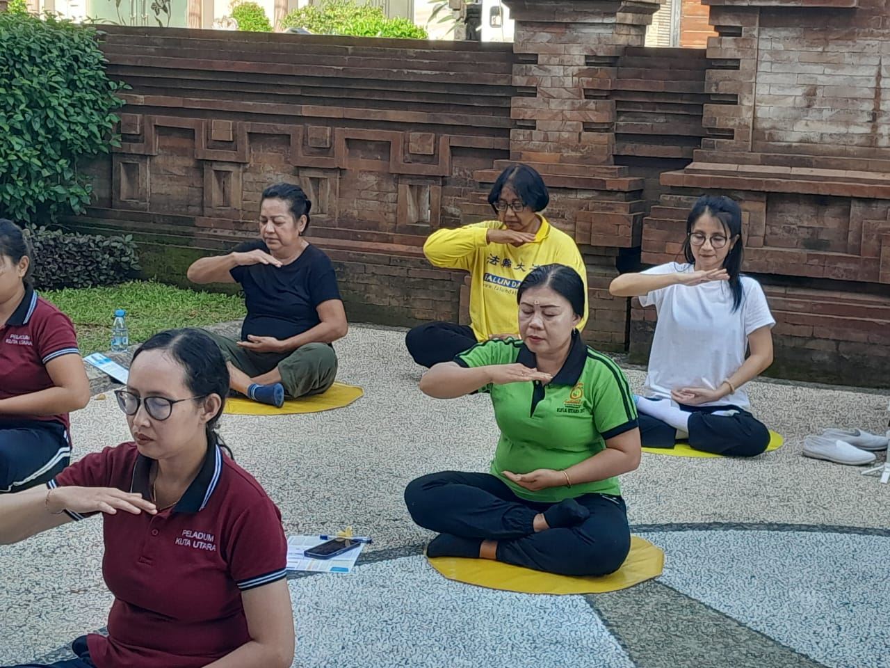 北庫塔區政府秘書普圖﹒拉克斯米﹒德維(Putu Laksmi Dewi)熱情歡迎法輪功學員教區政府工作人員學煉功法。活動結束後,她感謝學員們免費教功。