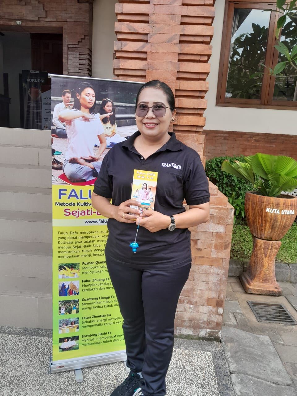 北庫塔區政府事務代理負責人蓋德﹒巴尤﹒普拉瑪納(Gede Bayu Pramana) 在此次活動中第一次學煉法輪大法的五套功法。他說:「雖然今天是我第一次煉法輪功,但我已經感覺到自身的變化。我感到更加平靜。昨天我還覺得頭暈,但今天煉功後感覺好多了。」