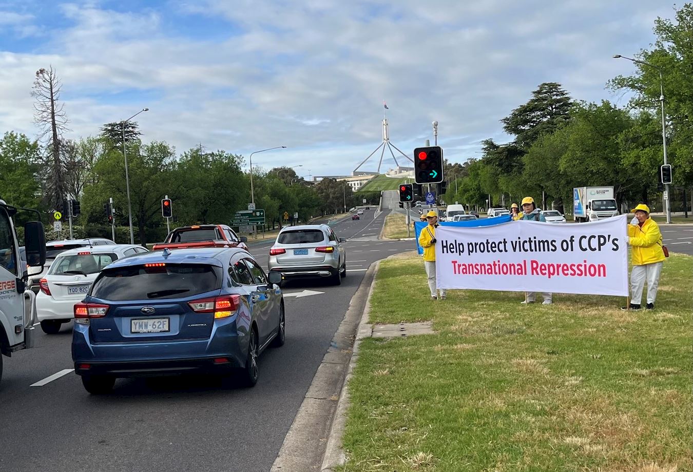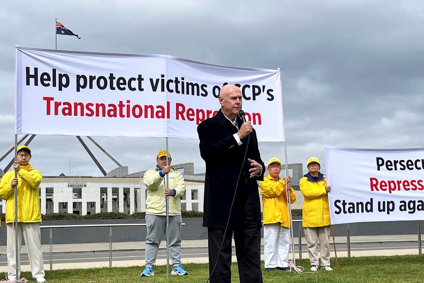 澳洲法輪大法學會發言人約翰﹒戴樂(John Deller)在集會上發言時表示:「跨國鎮壓是一種跨越國界的鎮壓形式,透過中共體制從中國大陸流出的這種鎮壓,影響範圍很廣。」