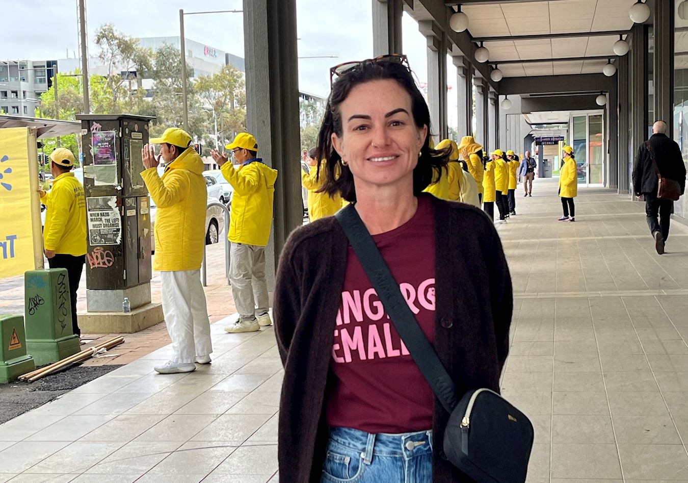 「如果澳洲不能保護像法輪功這樣一群遵循真、善、忍的好人的話,那今天中共打壓法輪功學員,明天可以打壓任何它不喜歡的團體或個人。」她說,「那麼信仰自由、言論自由何在?自由民主的根本將受中共威脅。」