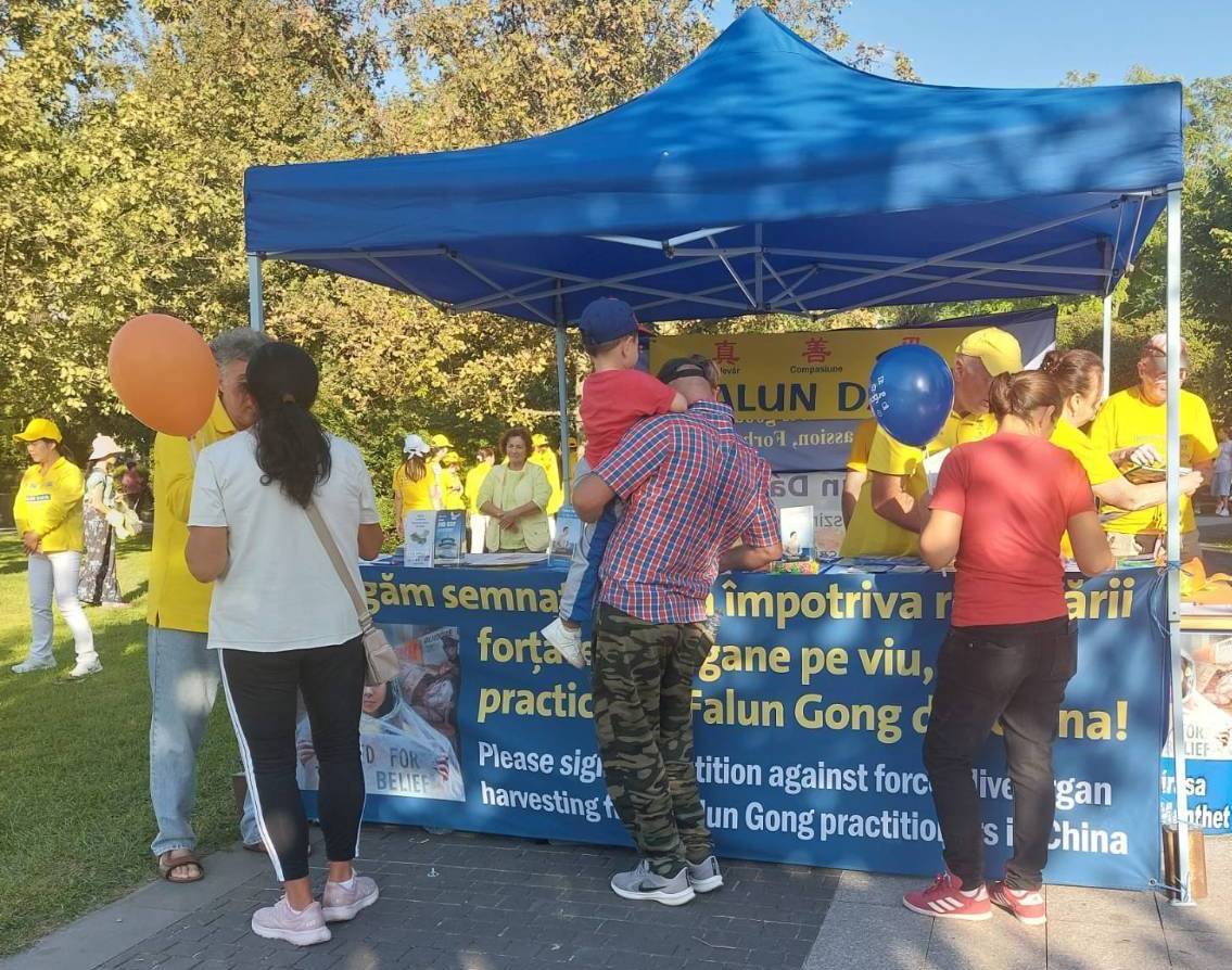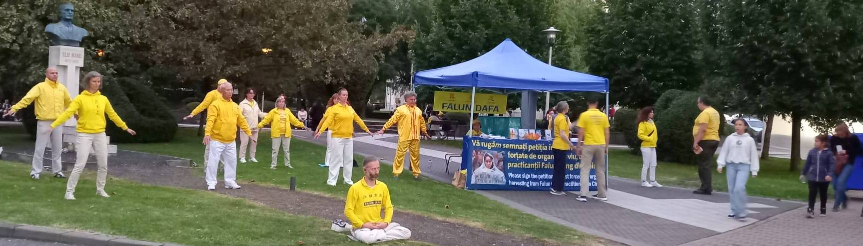 九月十九日(星期五)上午十一點至晚九點,學員們在馬拉酒店附近的尤利烏﹒馬紐雕像(the Statue of Iuliu Maniu)附近設立了信息展位,並於下午十二點三十分至三點參加了遊行。九月二十日(星期六)上午十一點至晚九點,信息日活動繼續進行。星期天上午九點至十一點,學員們在雷吉納瑪麗亞公園(Regina Maria Park)的法輪功煉功點演示功法,並於中午十二點至晚上九點在尤利烏﹒馬紐雕像附近繼續進行信息日活動。