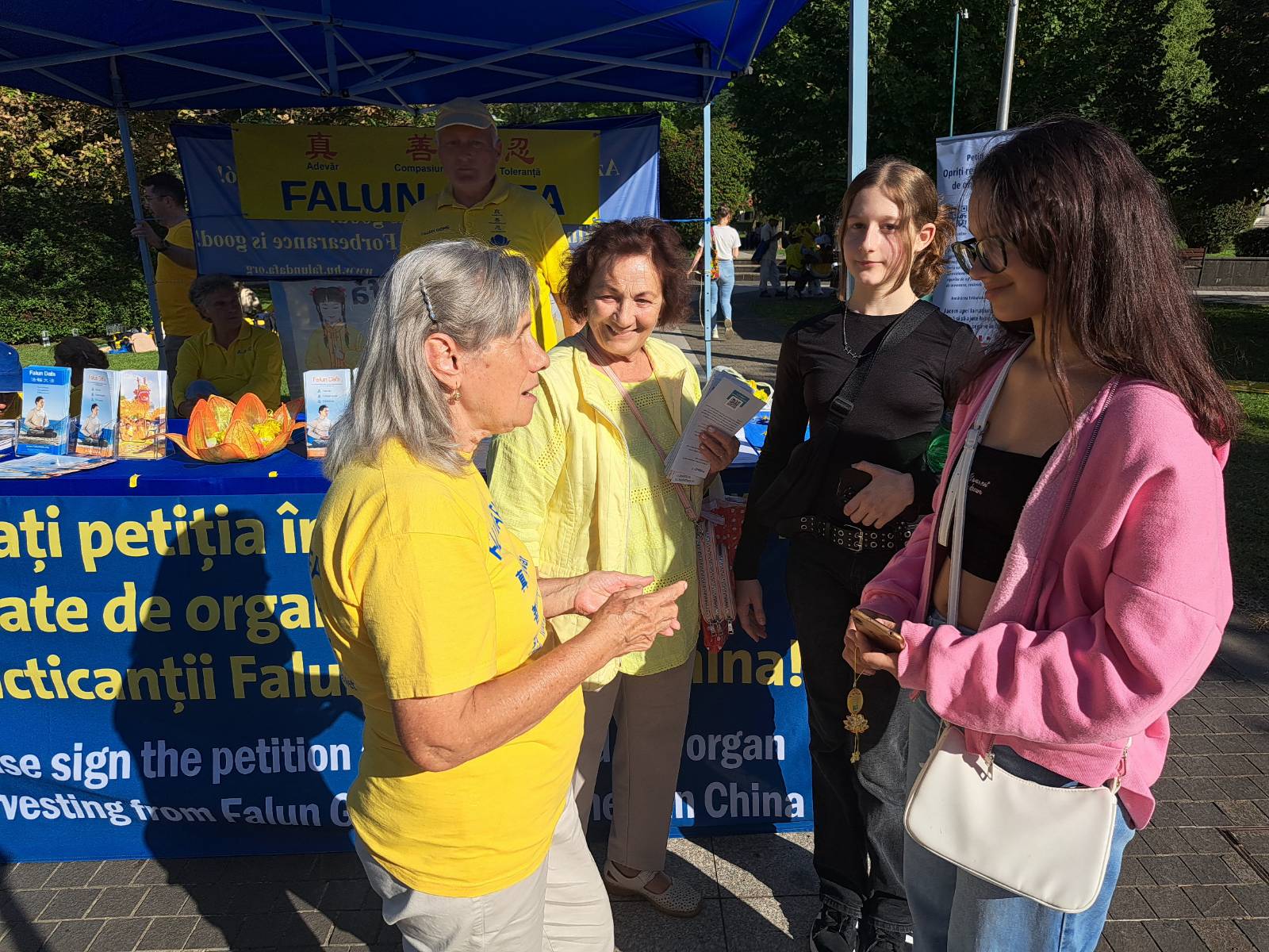 過往的路人與法輪功學員交談,進一步了解法輪大法的原理。許多人都表示認同法輪大法(真、善、忍)原理,並在自己的生活中也遵循這些原理。許多羅馬尼亞的老年人都親身經歷過羅馬尼亞共產主義政權時期,他們也表達了對遭受中共迫害的法輪功學員的同情。