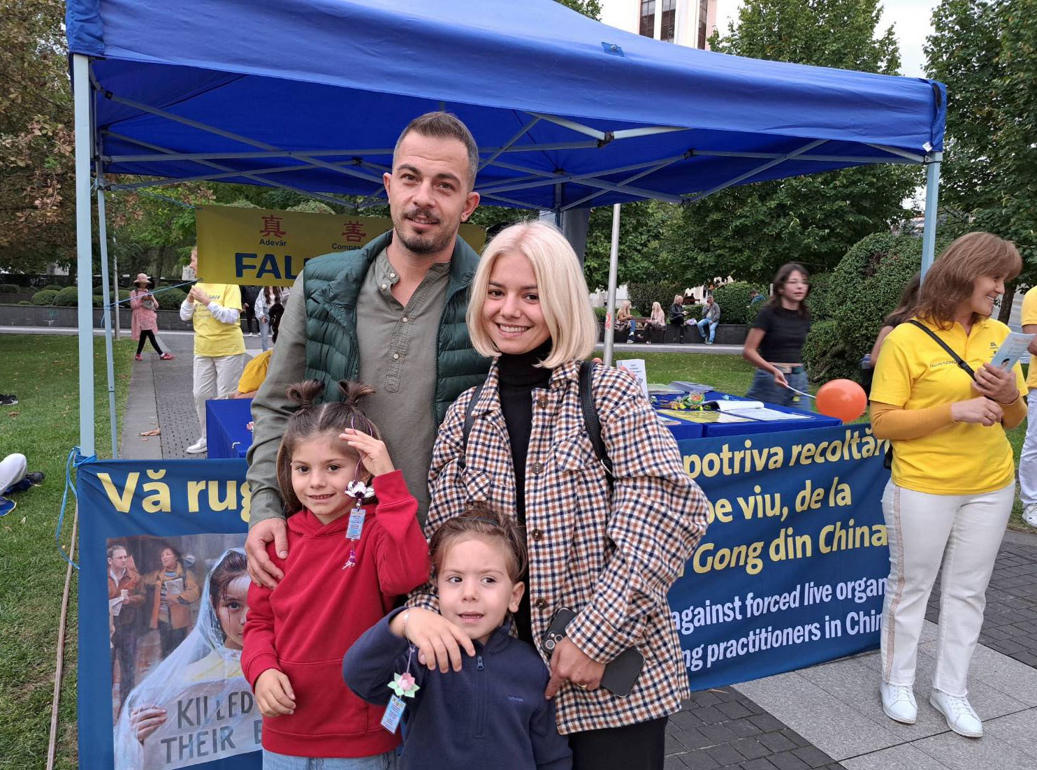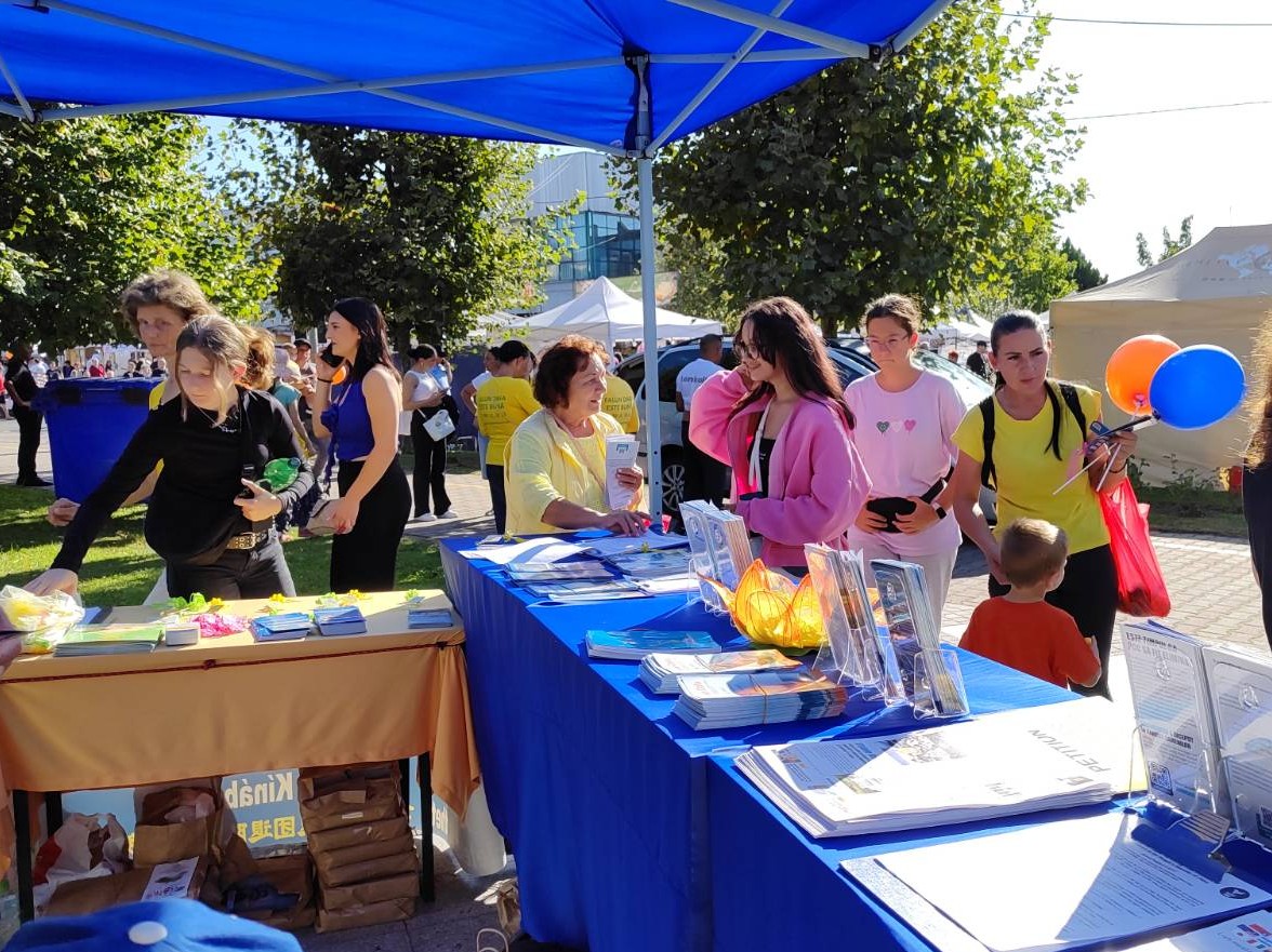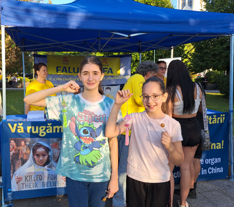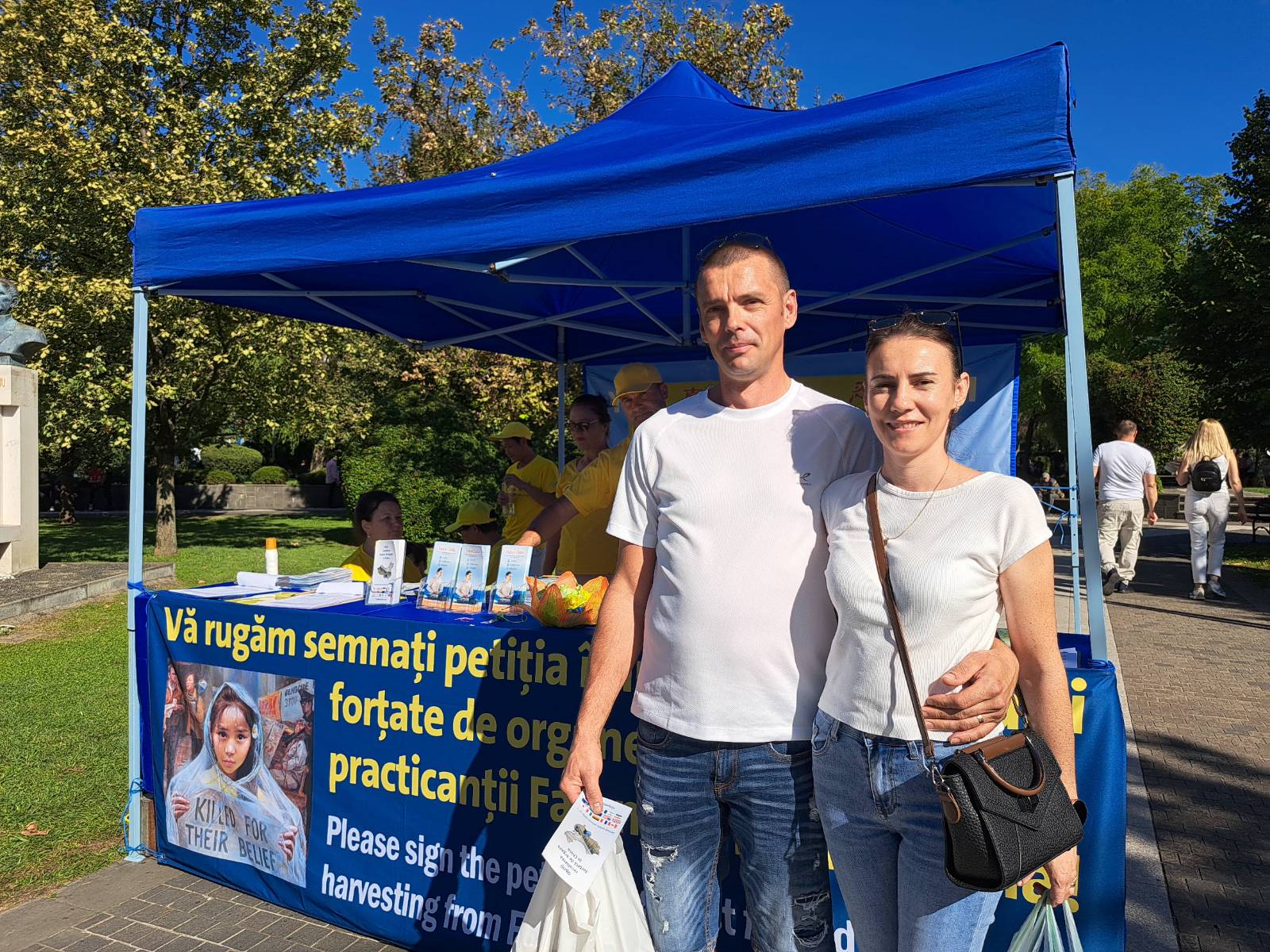 兩位年近八旬的老人安東尼婭(Antonia)和伊萬(Ioan)收到法輪功真相傳單和一朵小蓮花,深受感動。當了解到法輪大法基於真、善、忍的價值觀時,他們謙虛地說道:「我們家世代傳承著這些價值觀。我們的祖父母和父母教導我們這樣生活,我們又把他傳給了我們的孩子,現在又傳給了我們的孫輩,讓他們在生活中踐行這樣的行為準則。這個傳統將延續下去,希望這能成為每個人完全正常的生活方式。」