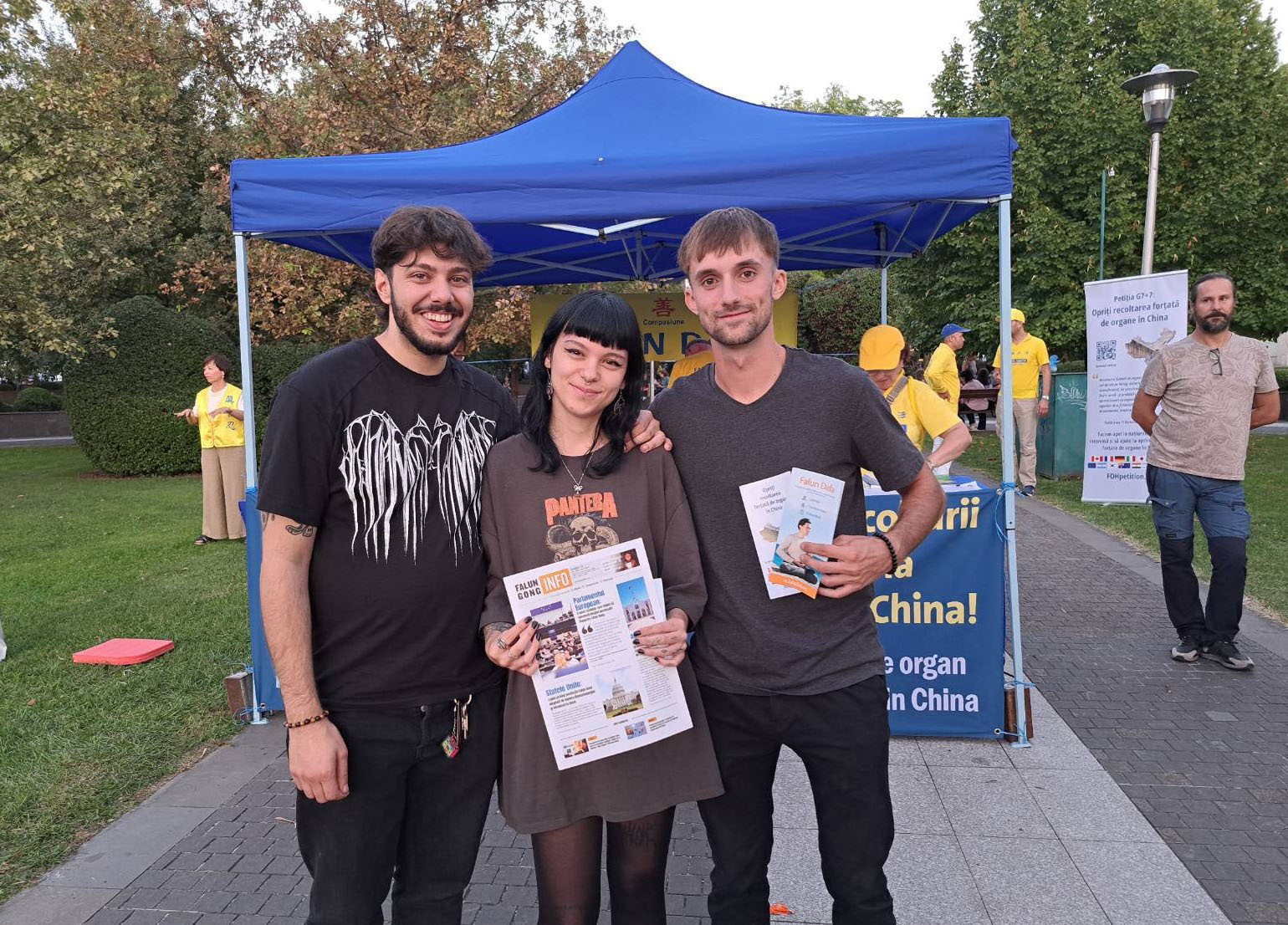 大衛(David)、奧索利亞(Orsolya )和博格丹(Bogdan) 在致 G7+7 國家的請願書上簽名,希望法輪功學員能夠獲釋,並被允許踐行他們的信仰。 「這些原則應該在世界各地傳播,而不是遭受迫害。」他們說。簽名後,大衛還帶其他朋友一起簽名。他感到憤怒,「在二十一世紀,竟然還有人針對如此平和、有精神信仰的人們犯下這種罪行。」